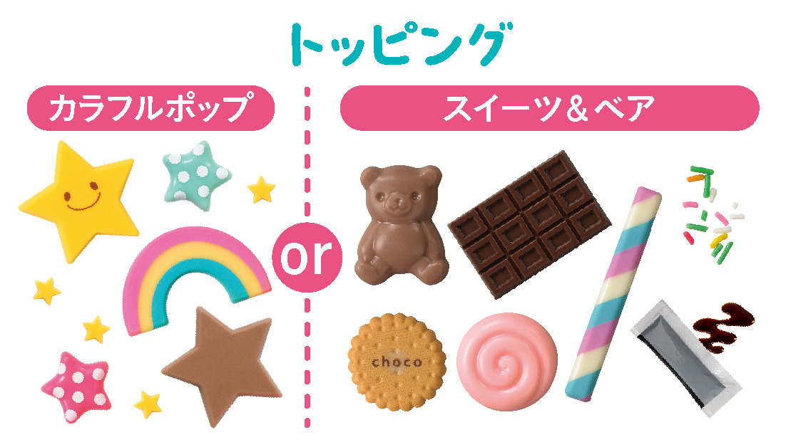 トッピングは「カラフルポップ」と新登場の「スイーツ&ベア」のどちらかを選べます。