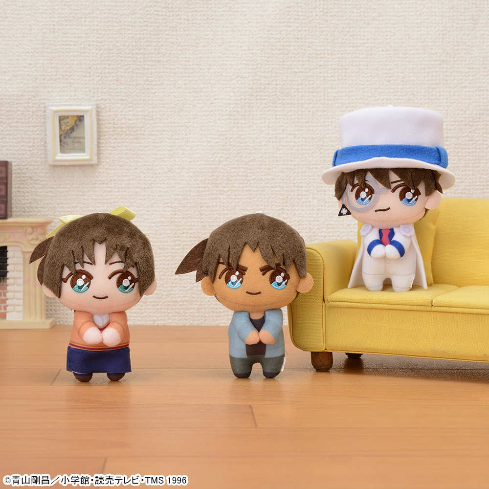 「工藤新一」「服部平次」「遠山和葉」をデザインした、おめめが大きくむちっとしたボディが特徴のとてもかわいいぬいぐるみです。