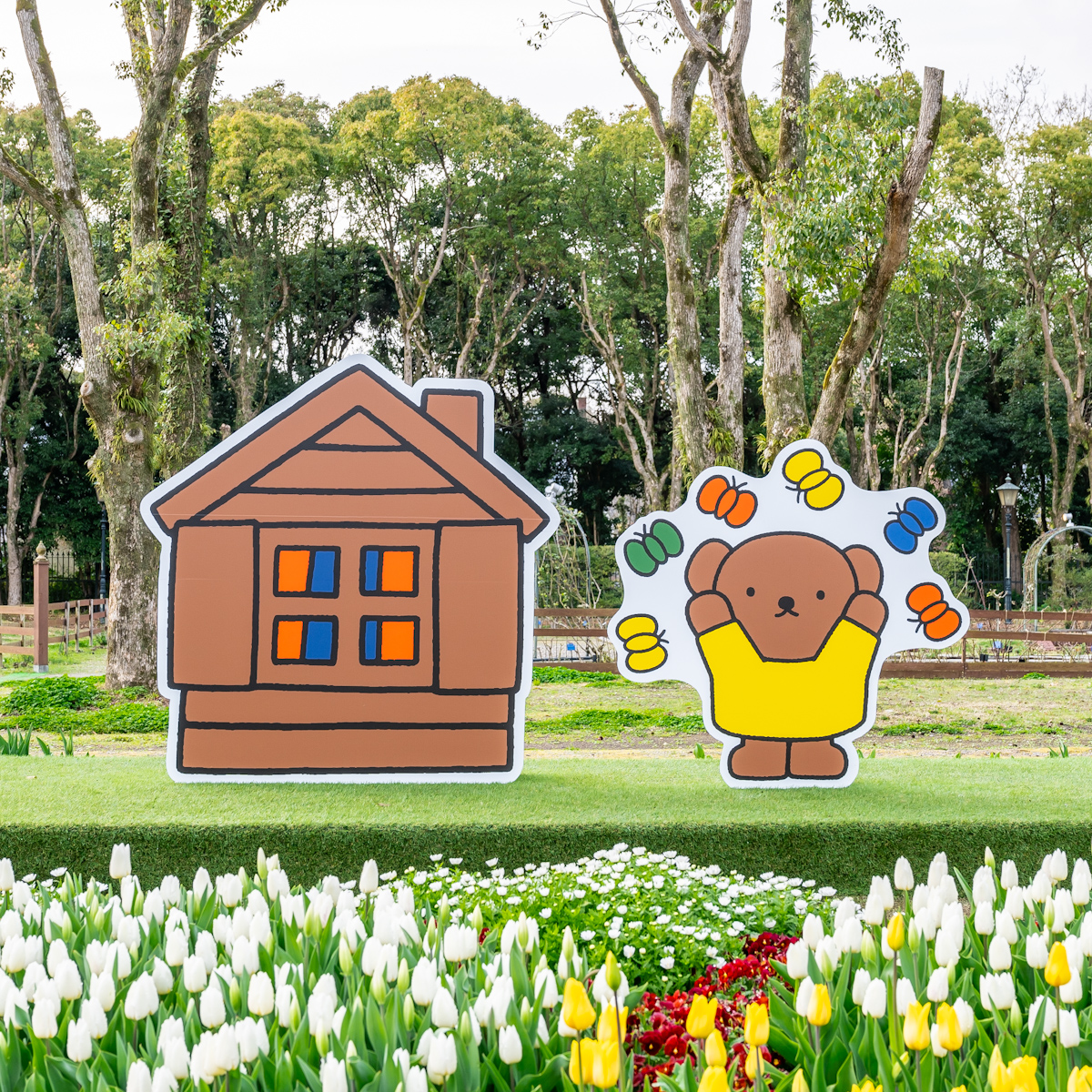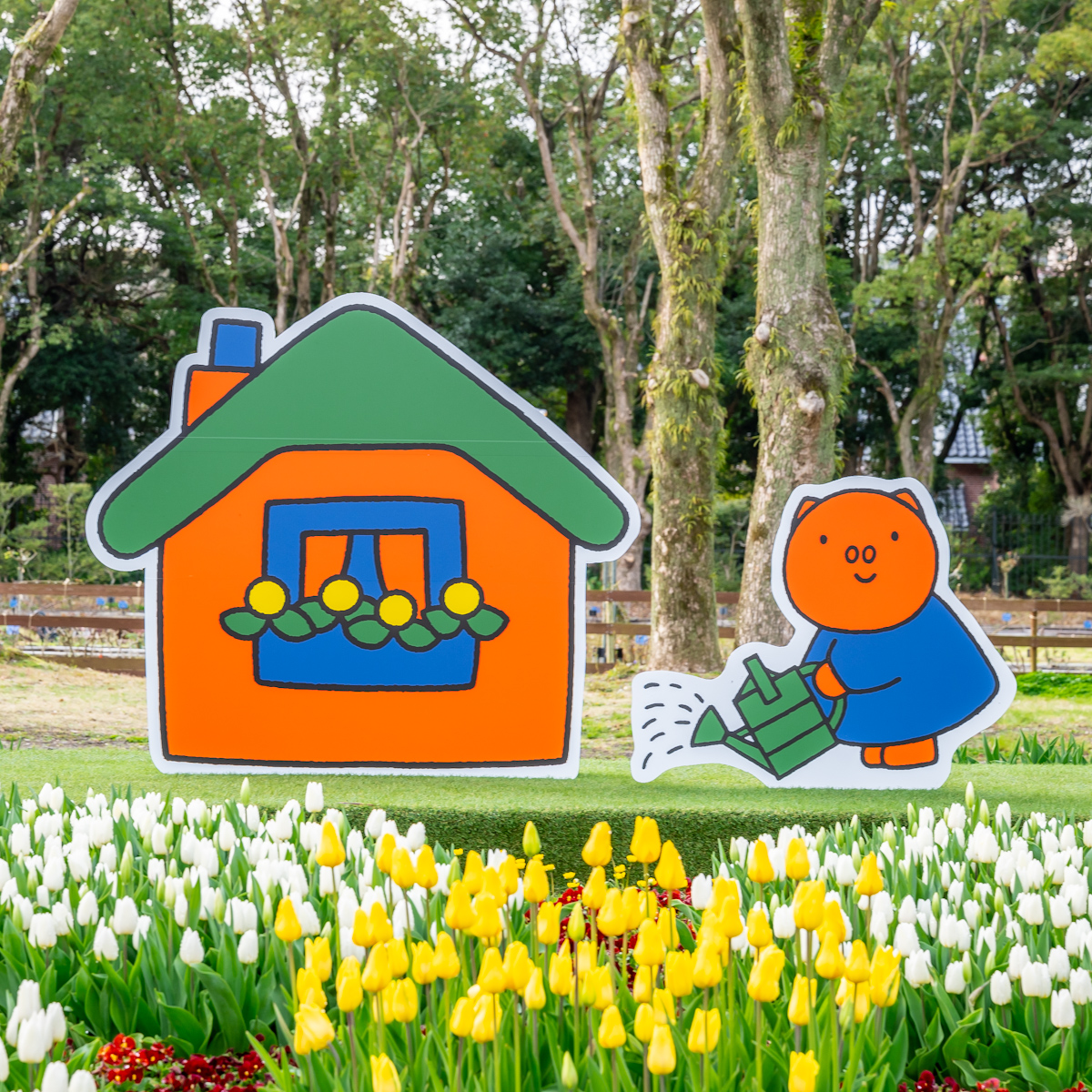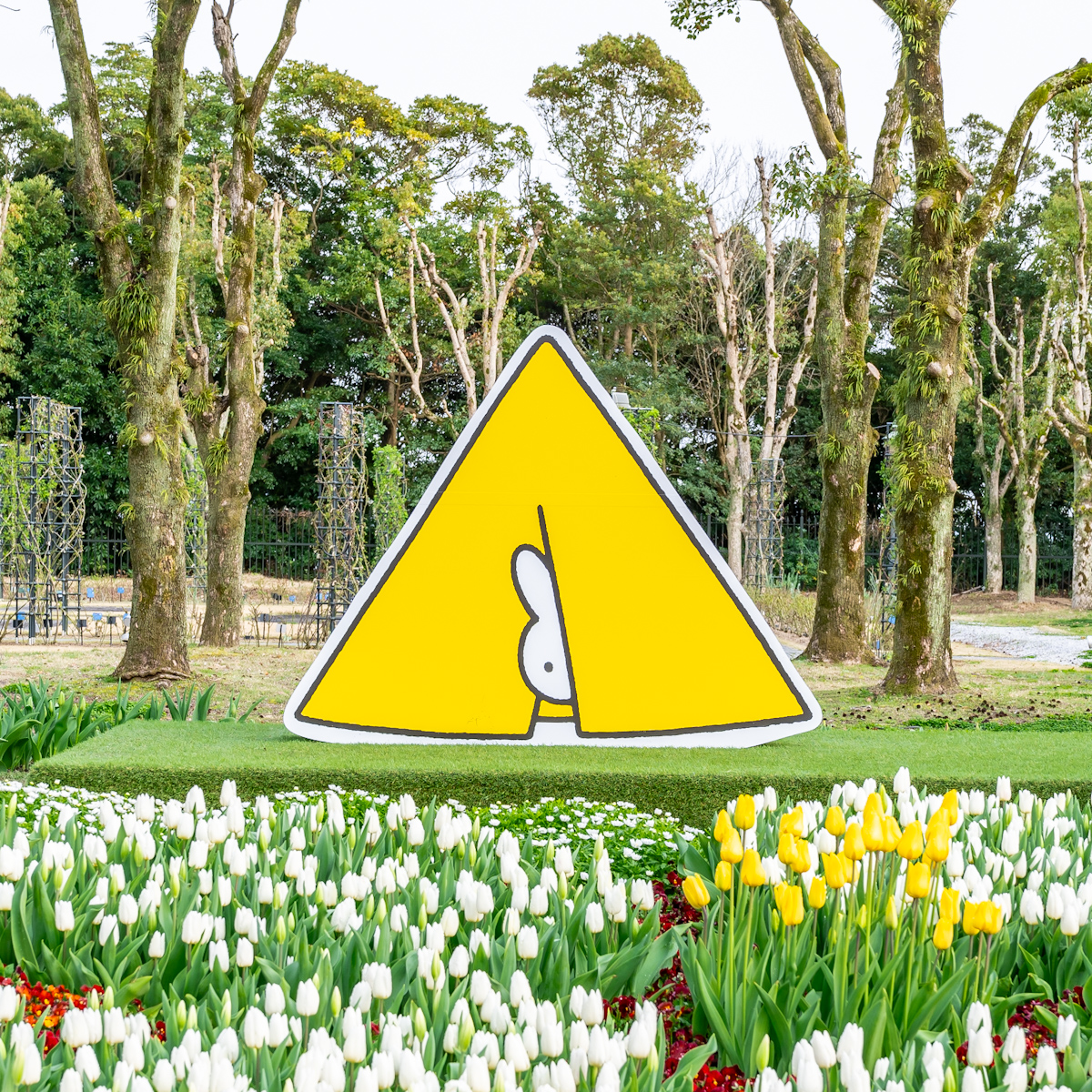 また、美術館前の花畑には、チューリップや季節の花々とともに「ミッフィー」や仲間たちのフォトスポットが登場。