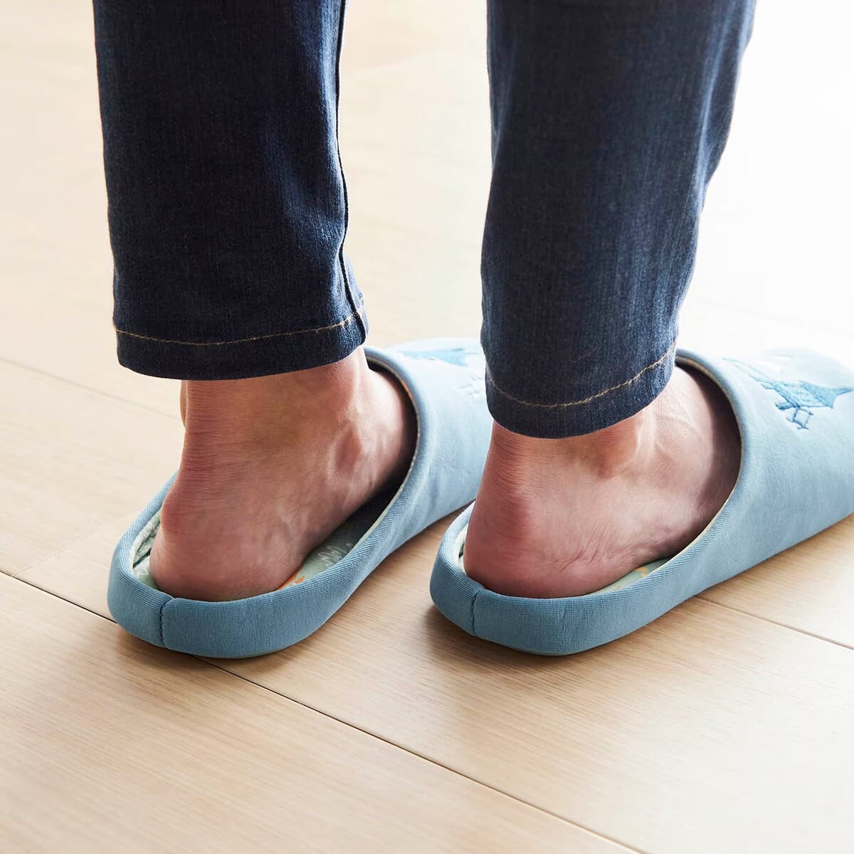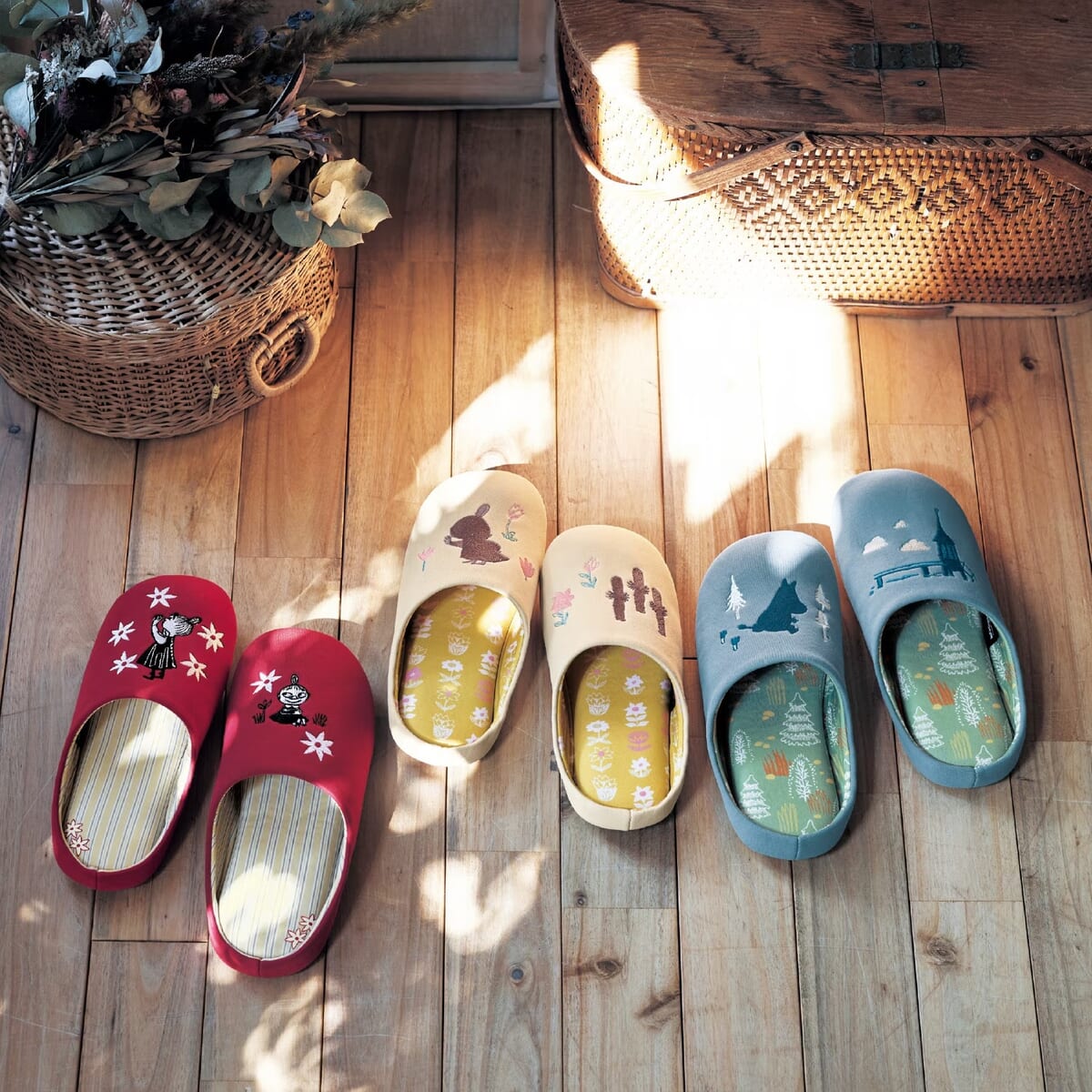 左足に「ミムラねえさん」、右足に「リトルミイ」の刺繍が入った快適スリッパ。