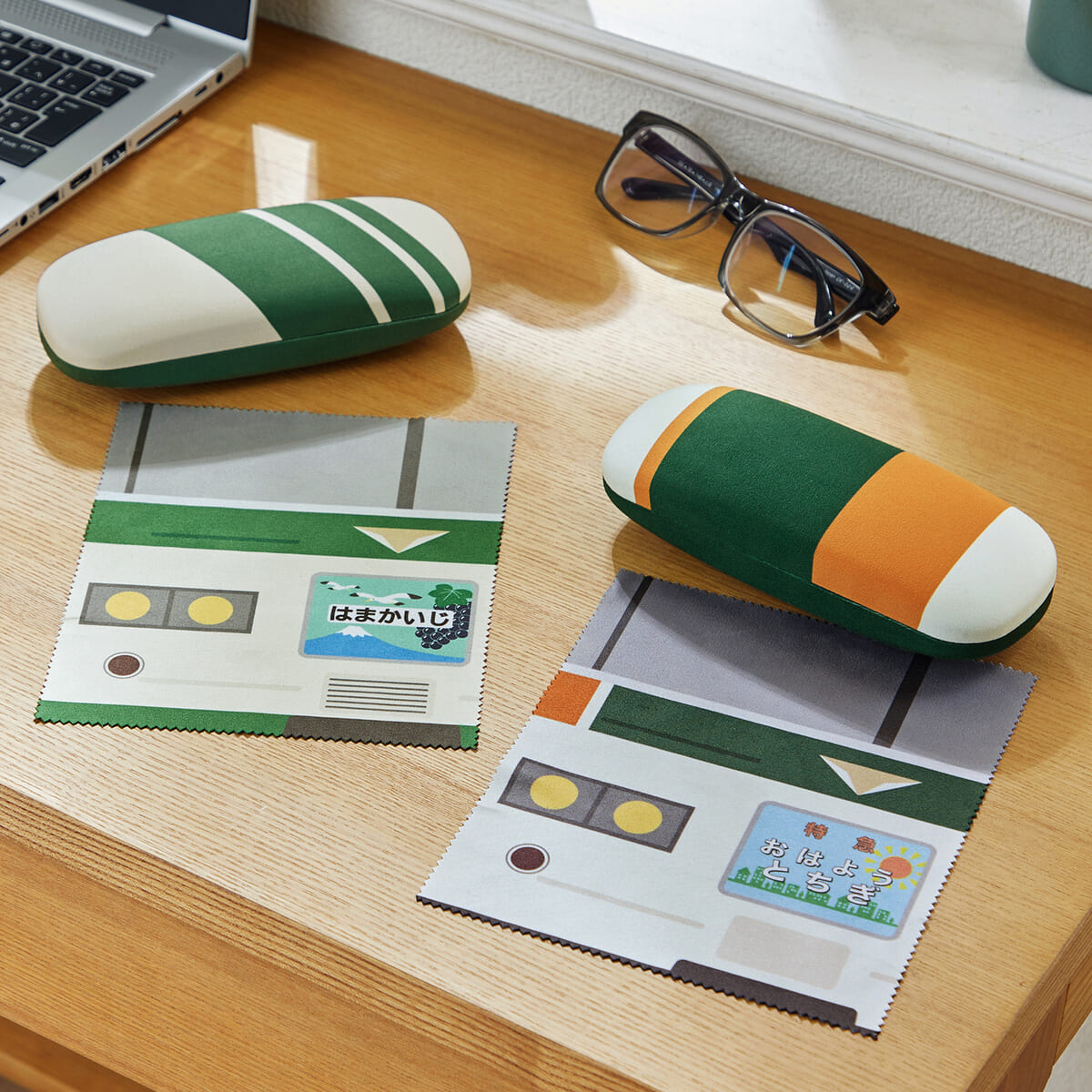 特急「はまかいじ」と特急「おはようとちぎ」をイメージした、マイクロファイバー素材のメガネケース。