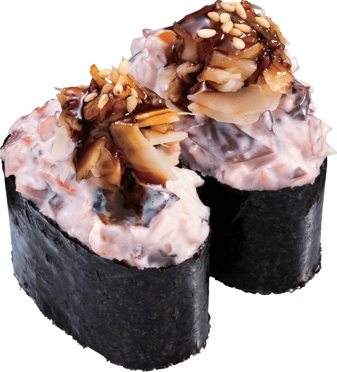 「プレミアムサラダ軍艦」に、甘だれガリ胡麻を加えたかっぱ寿司常連のアレンジメニュー。