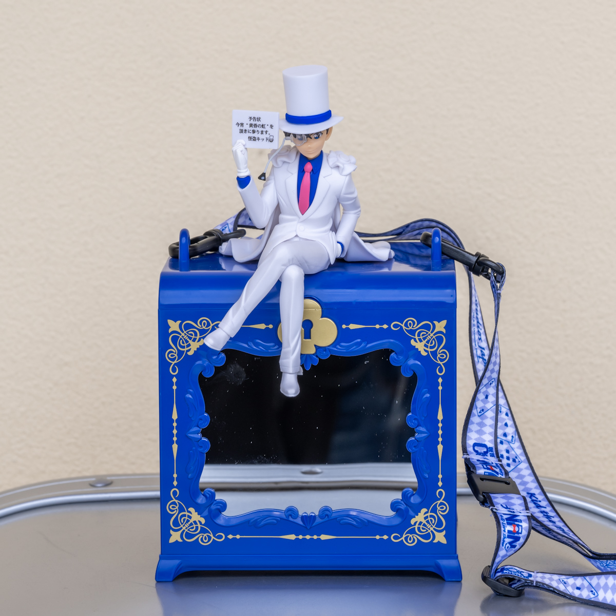 予告状に記されたメッセージにドキドキ、怪盗キッドの魅力いっぱいのポップコーンバケツです。