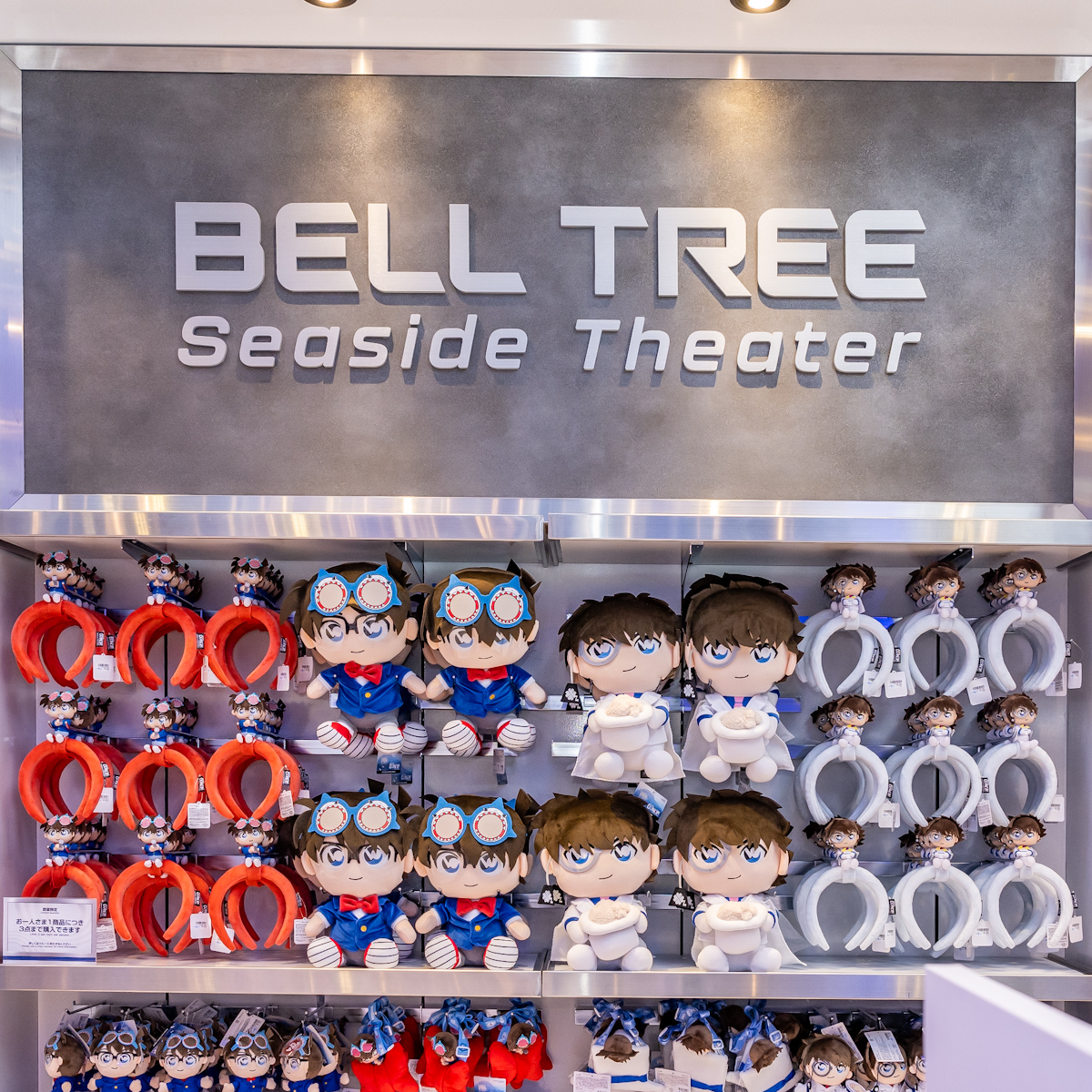 パークを楽しんでいる新一と蘭をモチーフにしたグッズ。