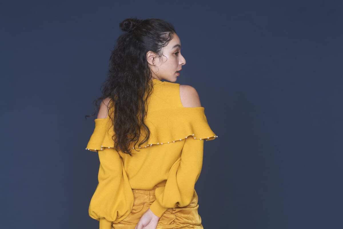 また、肩はさりげないパフスリーブになっていて、ヒレのような軽やかさを演出。