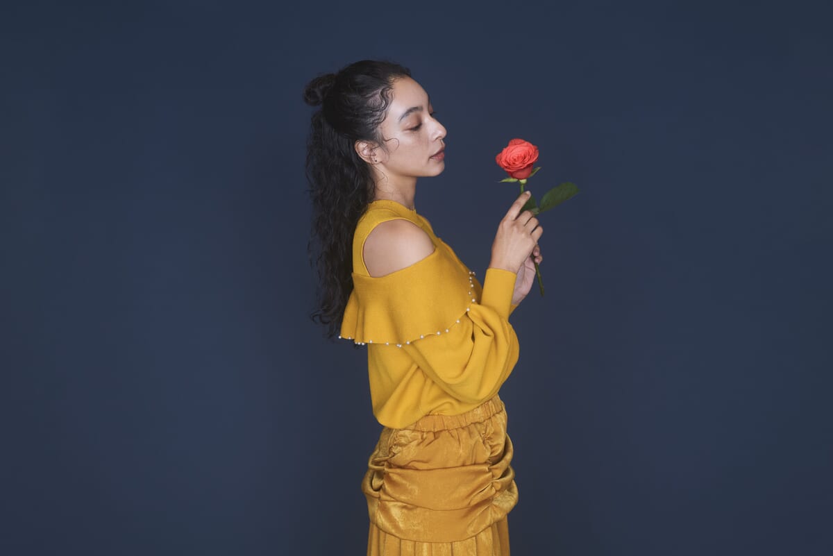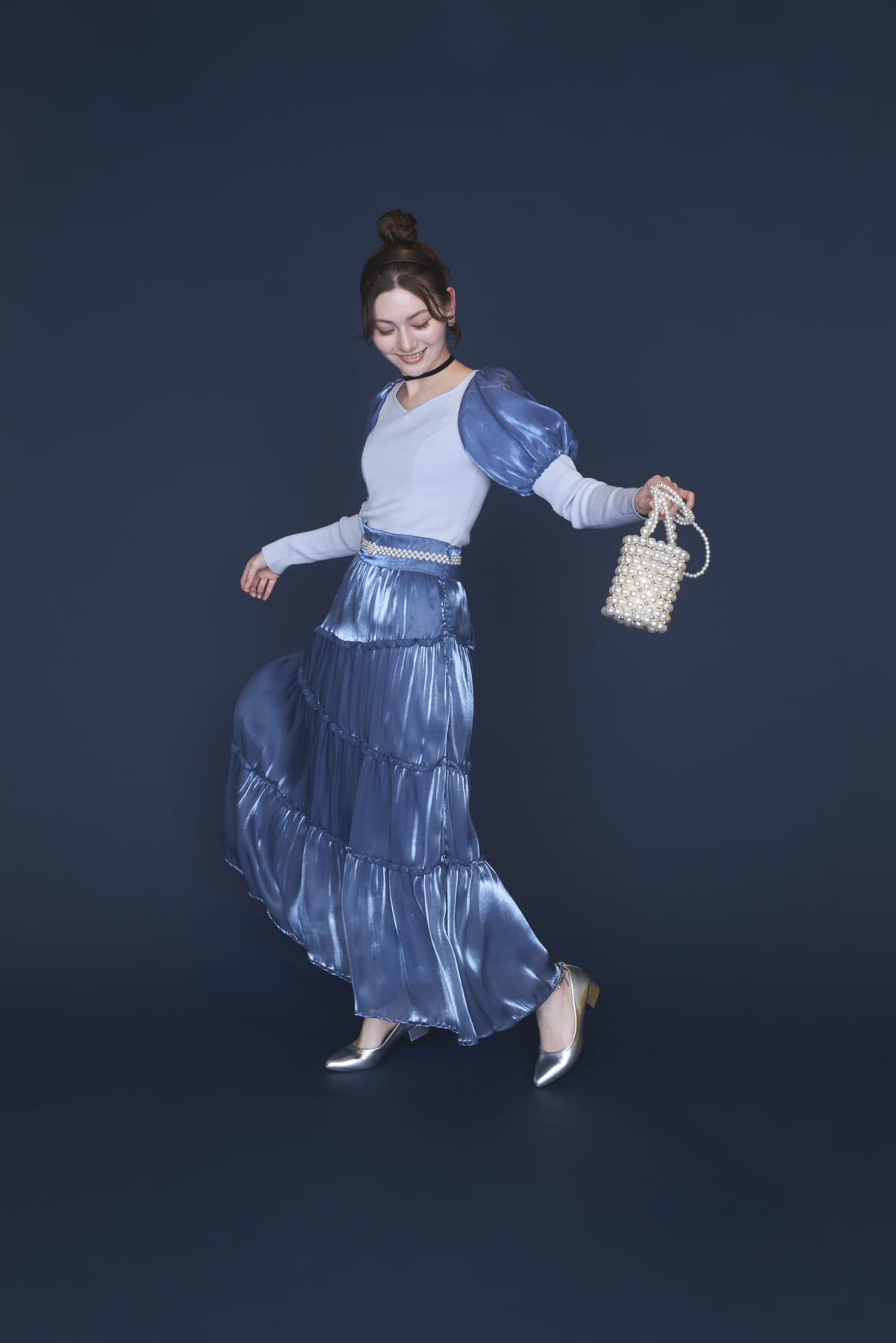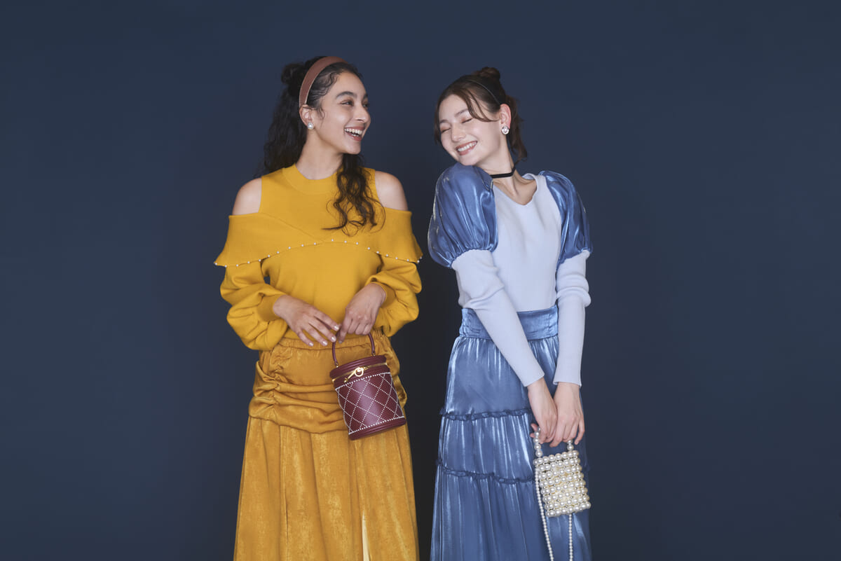 トップスがスッキリ着こなせるようになっているので、肩パフやスカートのふんわりとした質感を引き立ててくれます。