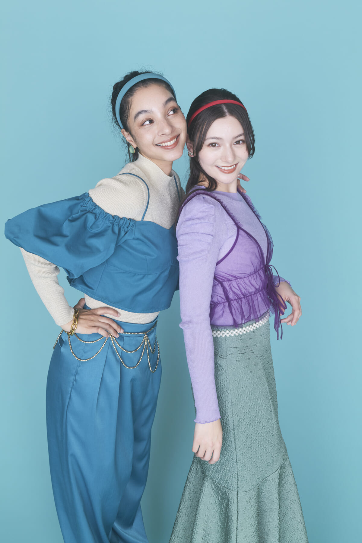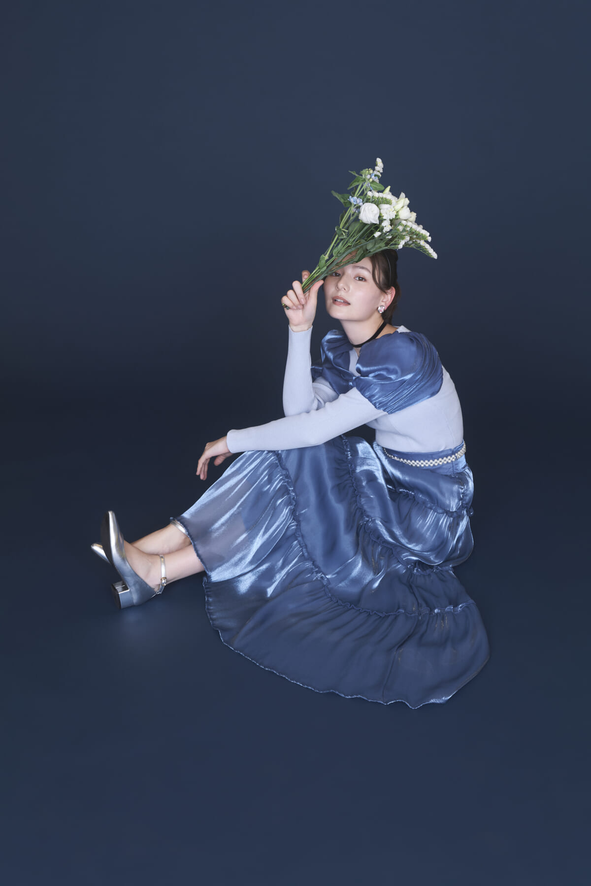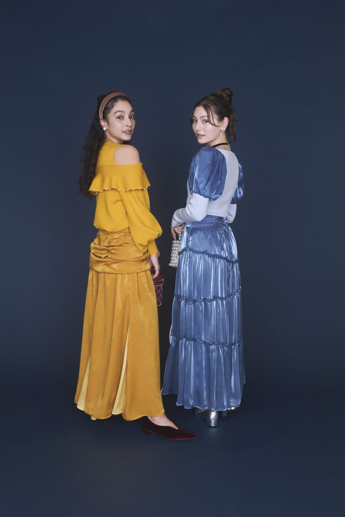 トップスがスッキリ着こなせるようになっているので、肩パフやスカートのふんわりとした質感を引き立ててくれます。
