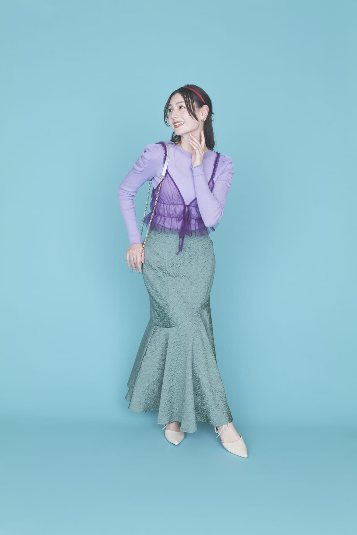 マーメイドスカートを取り入れたバウンドコーデです。