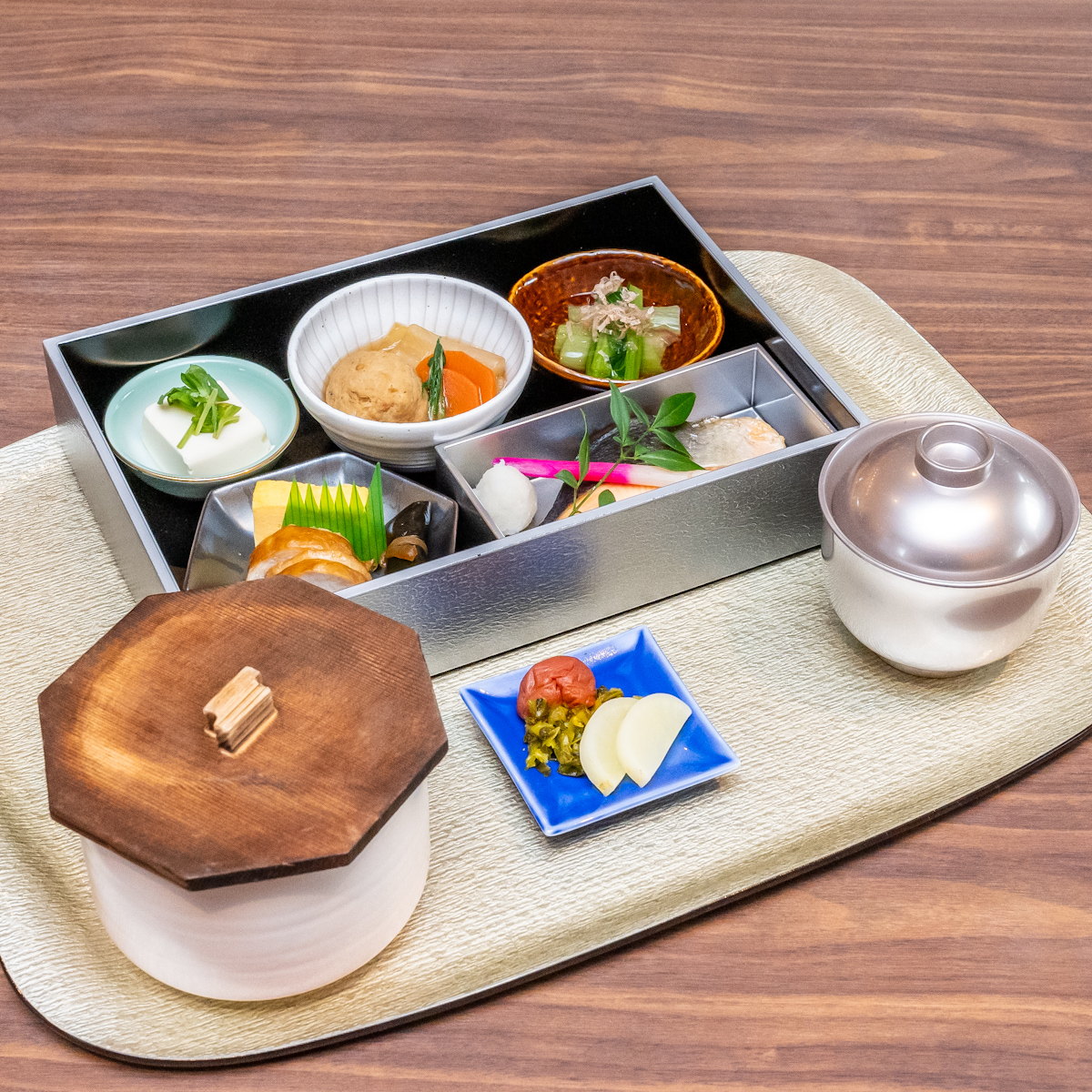 定番の納豆や卵焼きのほか金山寺味噌を添えた冷奴などご飯のお供にぴったりのおかずが楽しめます。