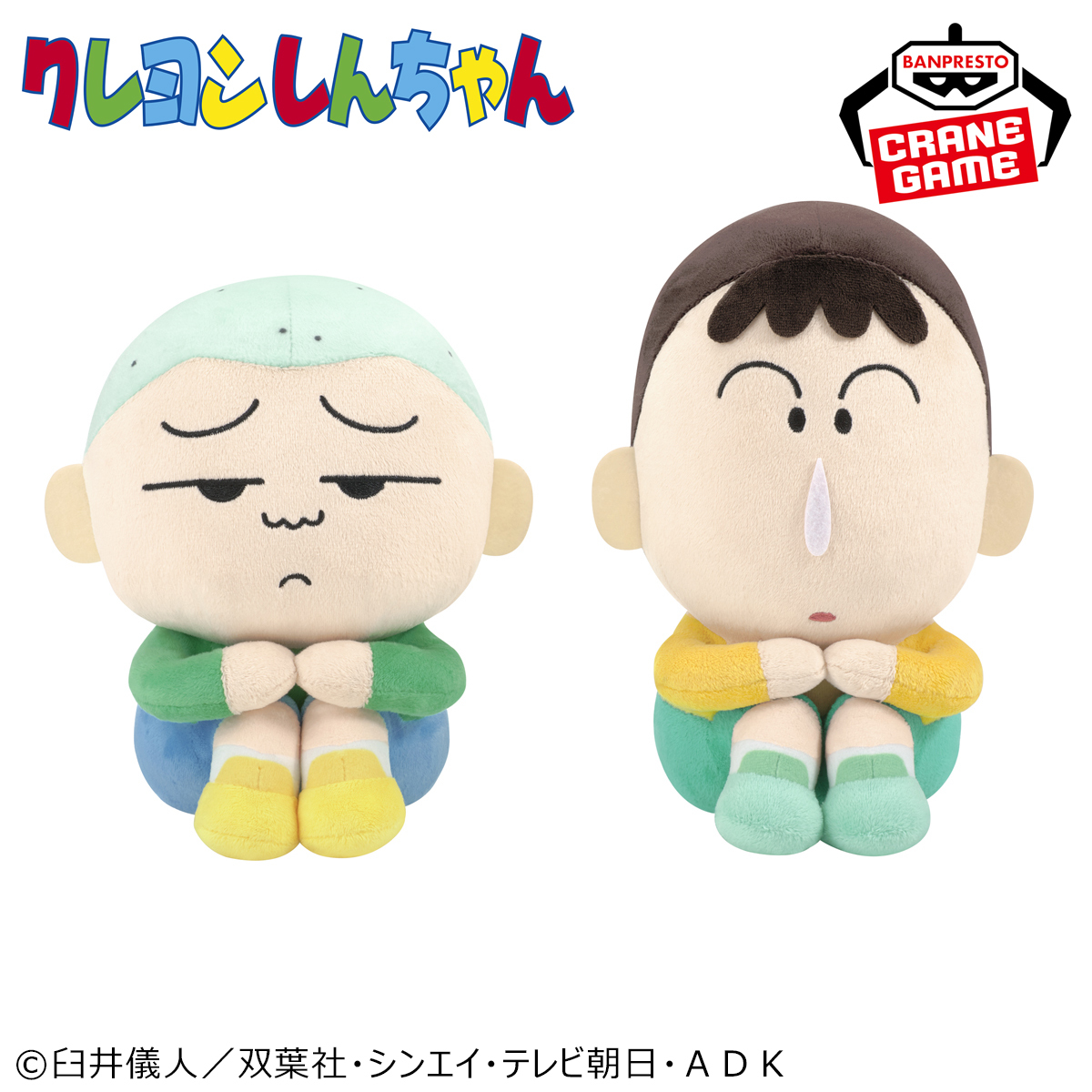 ぬいぐるみは4月より3か月連続で「しんちゃん」と「かざまくん」、「マサオくん」と「ボーちゃん」、「ネネちゃん」と「シロ」がラインナップ。