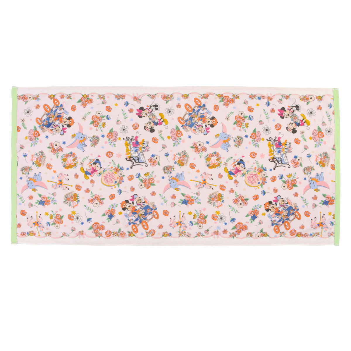 花咲き誇るパークを満喫するミッキーたちが描かれたカットクロス。
