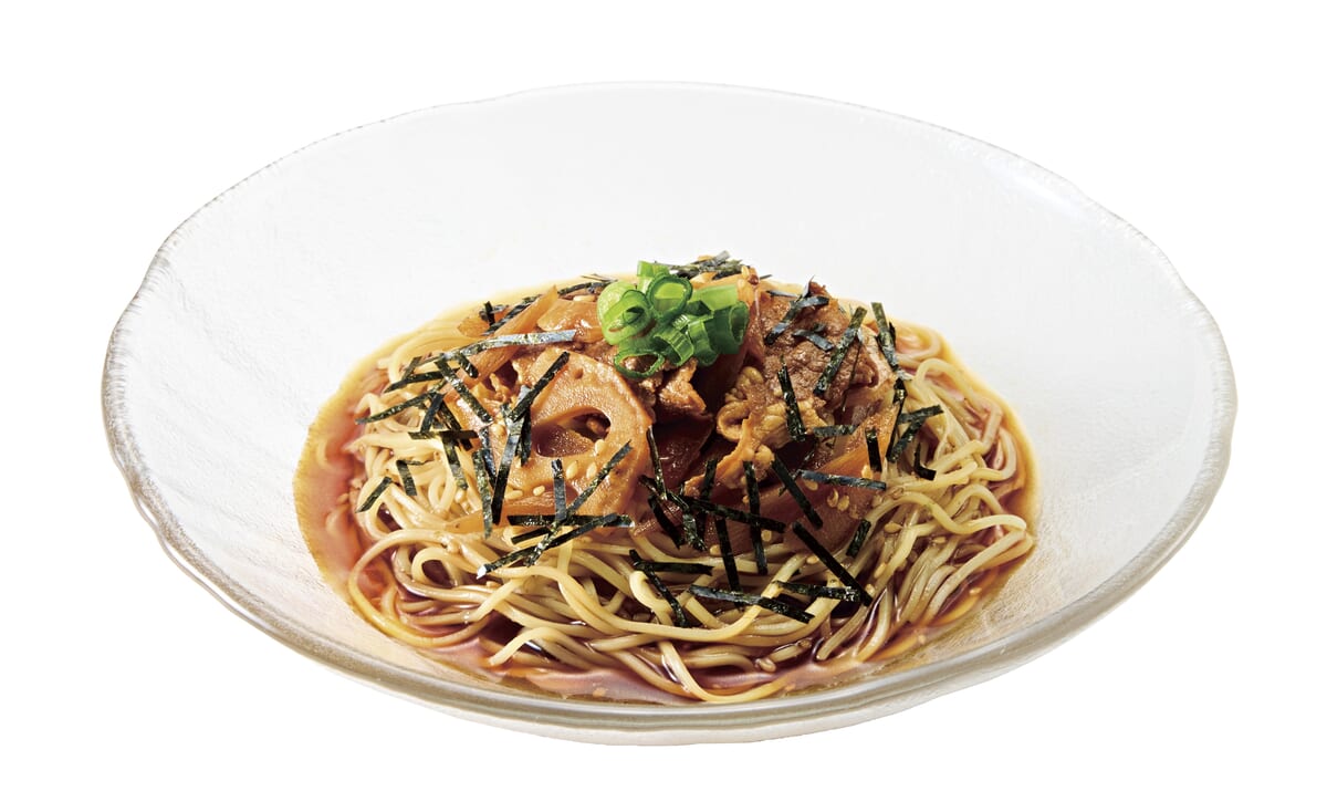 和風の味わい「豚肉と根菜の甘辛涼風麺」