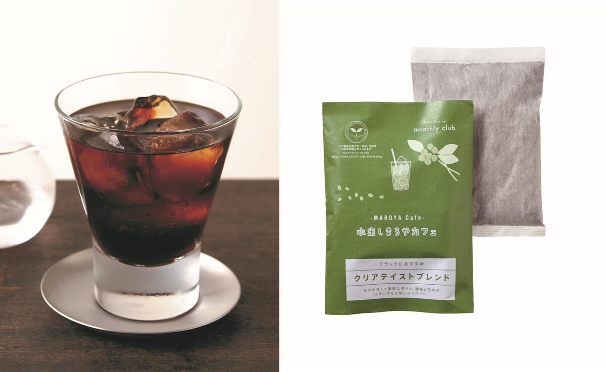コーヒーバッグ1袋と水1Lを入れて冷蔵庫で一晩(約8時間)置くだけで、簡単に美味しいアイスコーヒーができる「水出しまろやカフェ」