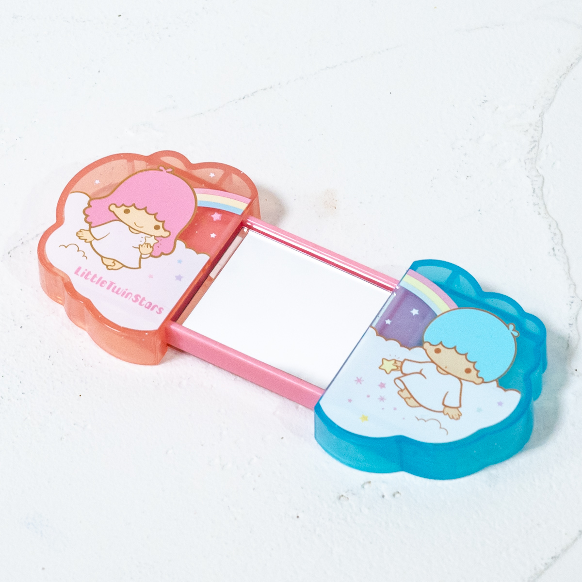 「リトルツインスターズ」のケース両端を持って左右にスライドさせると鏡が登場。