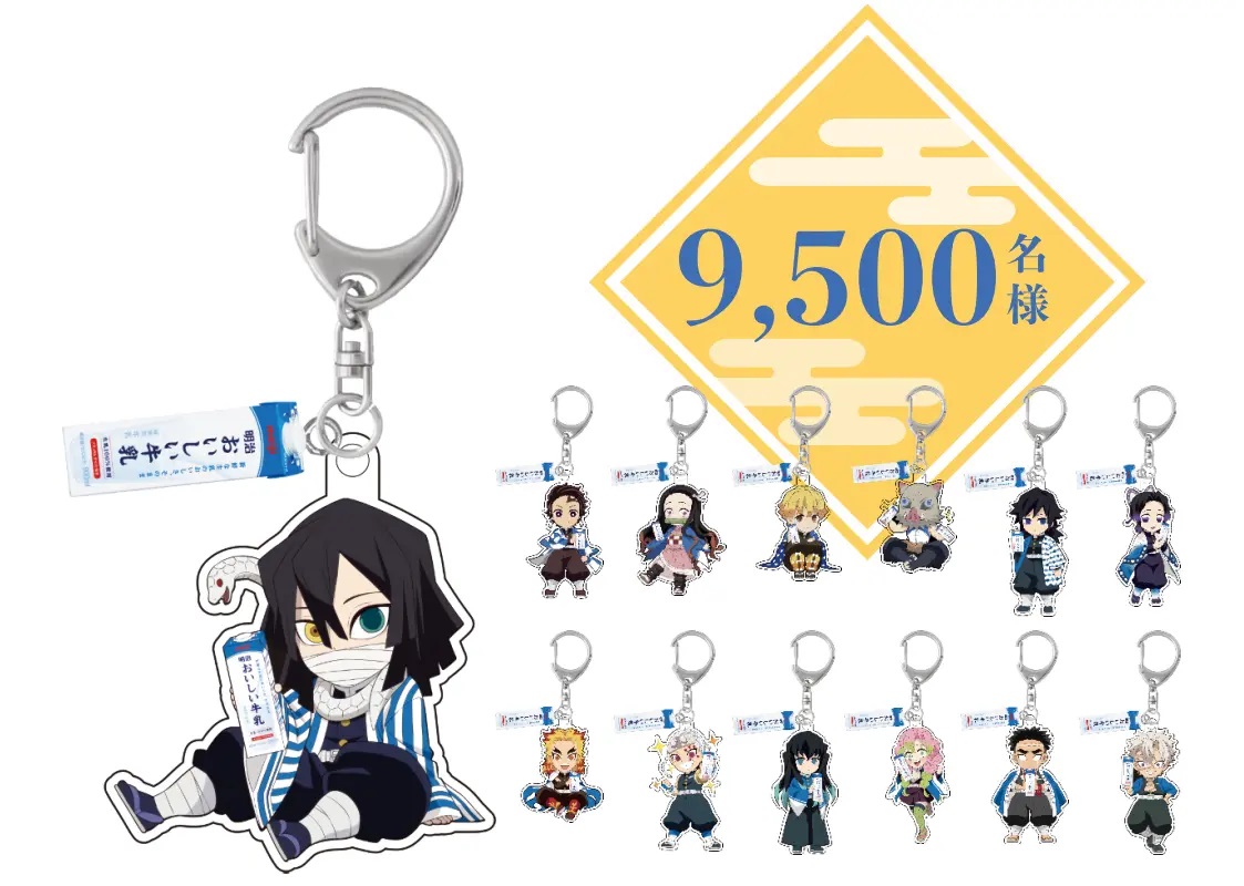 Wチャンスでは、「竈門炭治郎」や「竈門禰豆子」「我妻善逸」のほか柱たち全13種の「オリジナルキーホルダー」が合計9,500名に当たります。