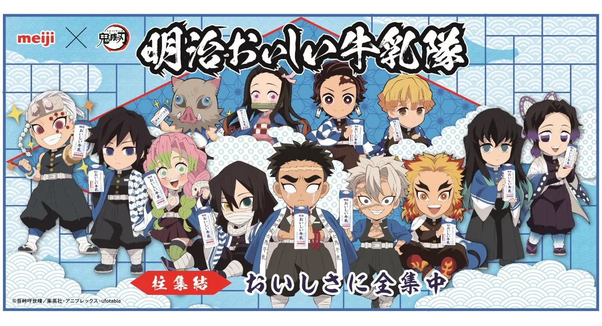 キービジュアルには、おいしさに全集中というメッセージのもと「明治おいしい牛乳隊」として柱メンバーが描き下ろされ、初めて柱メンバー全員が勢揃いしました。