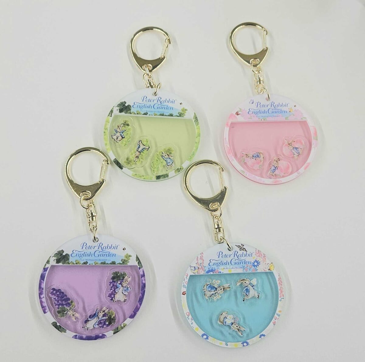 「ピーターラビット」のフレークを閉じ込めたキーホルダー。