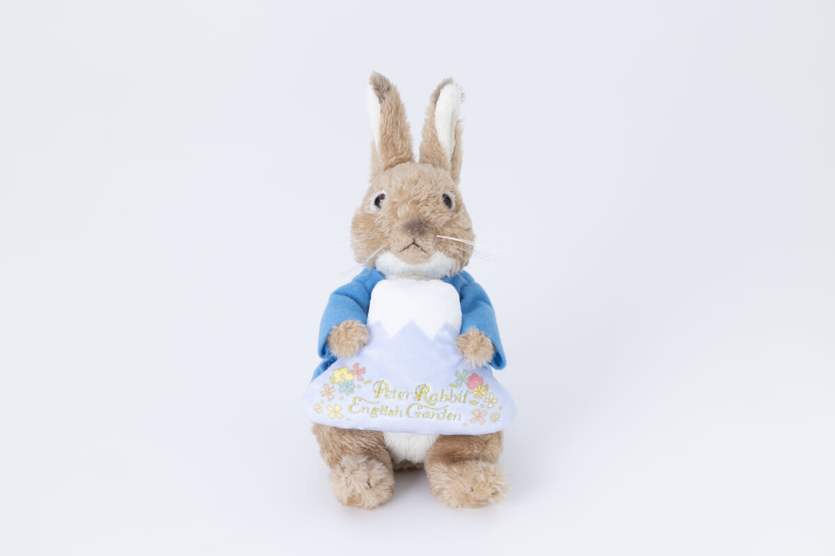 「ピーターラビット」が持つ富士山には「ピーターラビットTM イングリッシュガーデン」のロゴが刺繍されています。