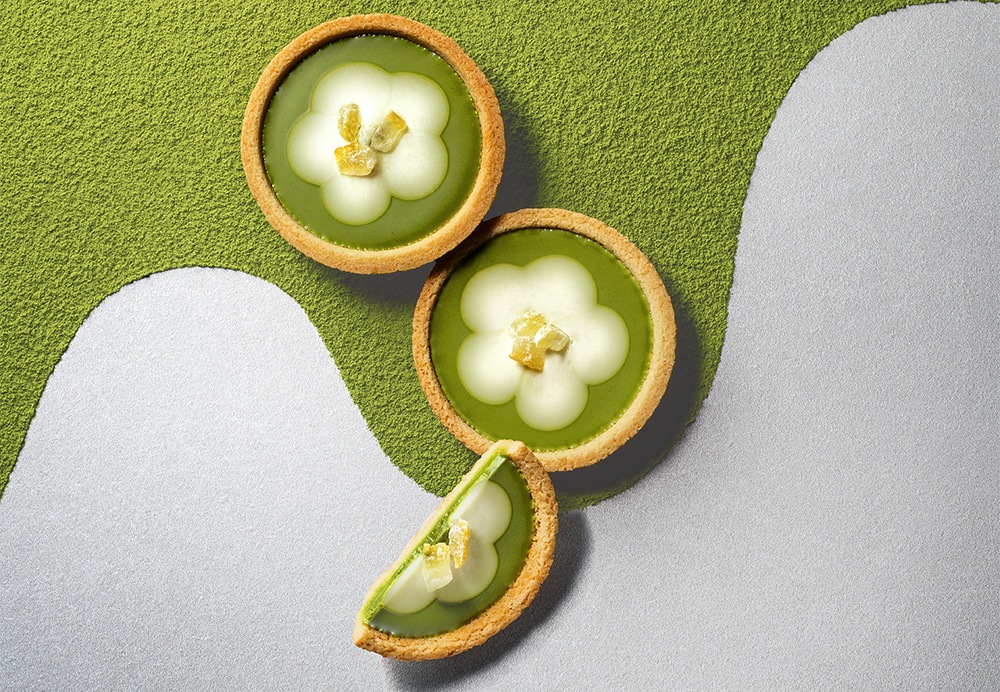 お抹茶ラテタルト 茶の夢~ゆず添え 撮影