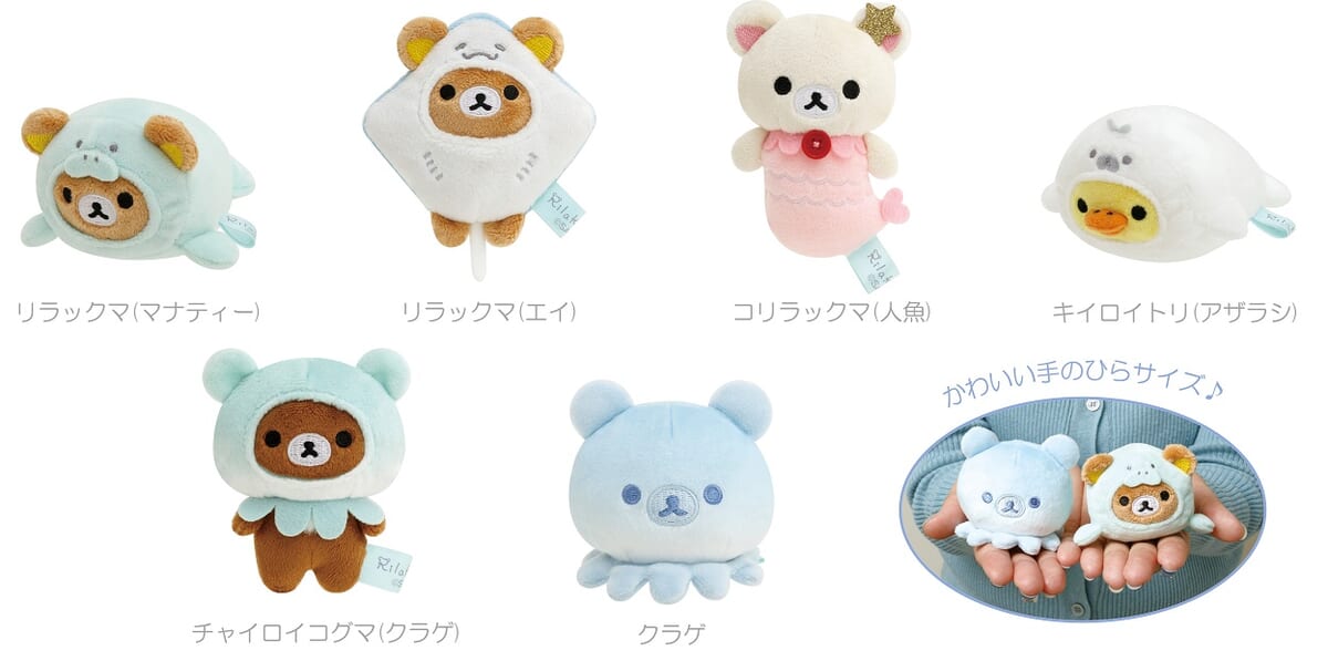 海の生き物になった「リラックマ」たちの、手のひらサイズなぬいぐるみ。
