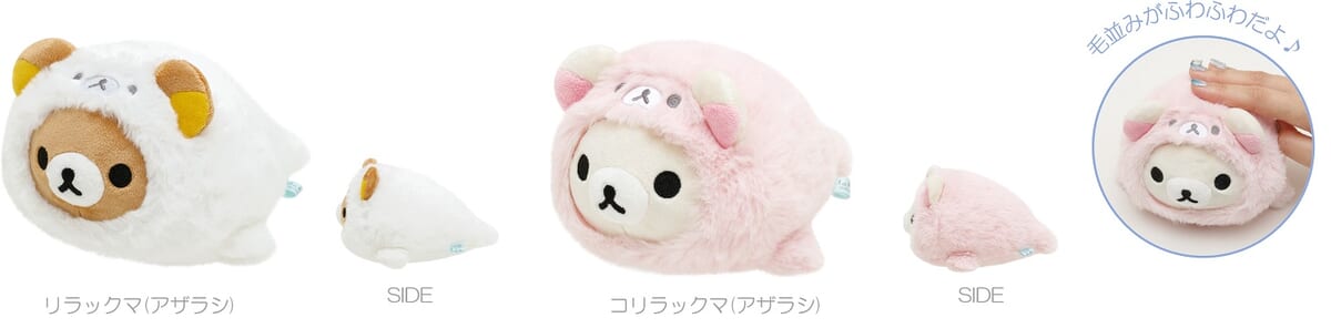 アザラシ姿の「リラックマ」と「コリラックマ」のぬいぐるみ。