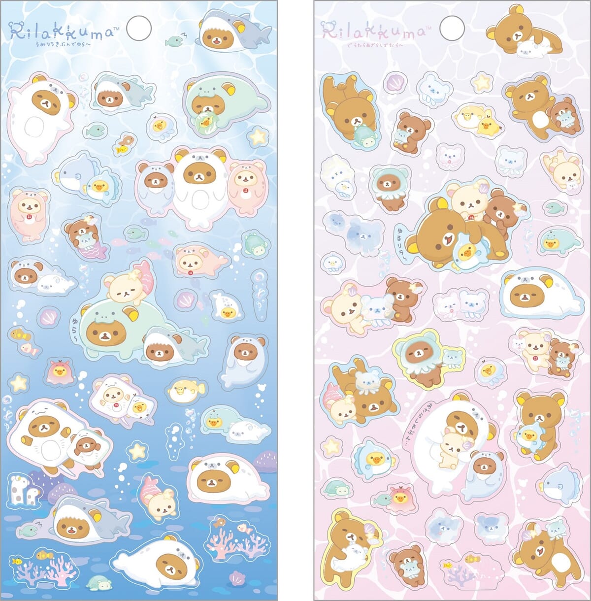 アザラシやマンボウなど、海の動物になった「リラックマ」たちのシール。