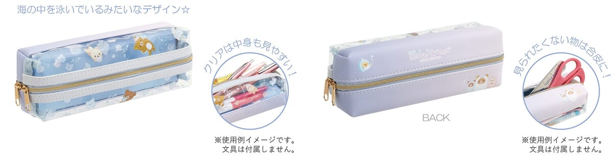 クリア塩ビの部分は中身が見やすく、「リラックマ」や「コリラックマ」が泳いでいるような雰囲気です。