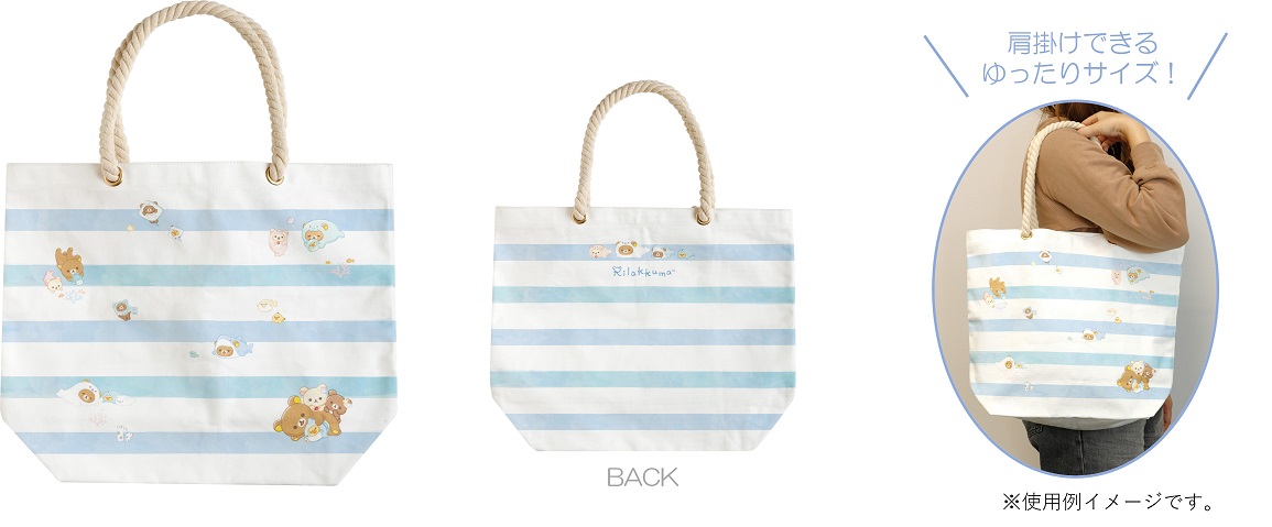 海で過ごす「リラックマ」たちの姿が散りばめられ、ブルーとホワイトのボーダーがマリンテイストな印象です。