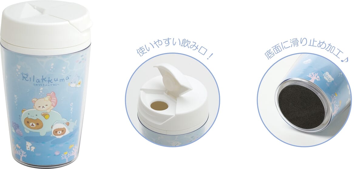 海の動物になって泳ぐ「リラックマ」たちの姿をデザインしたクリアタンブラー。