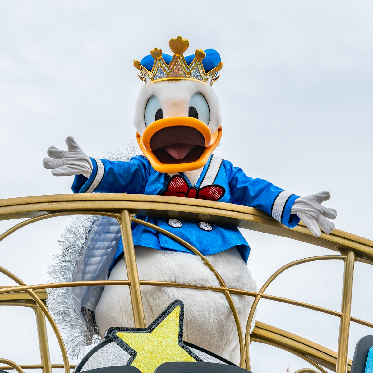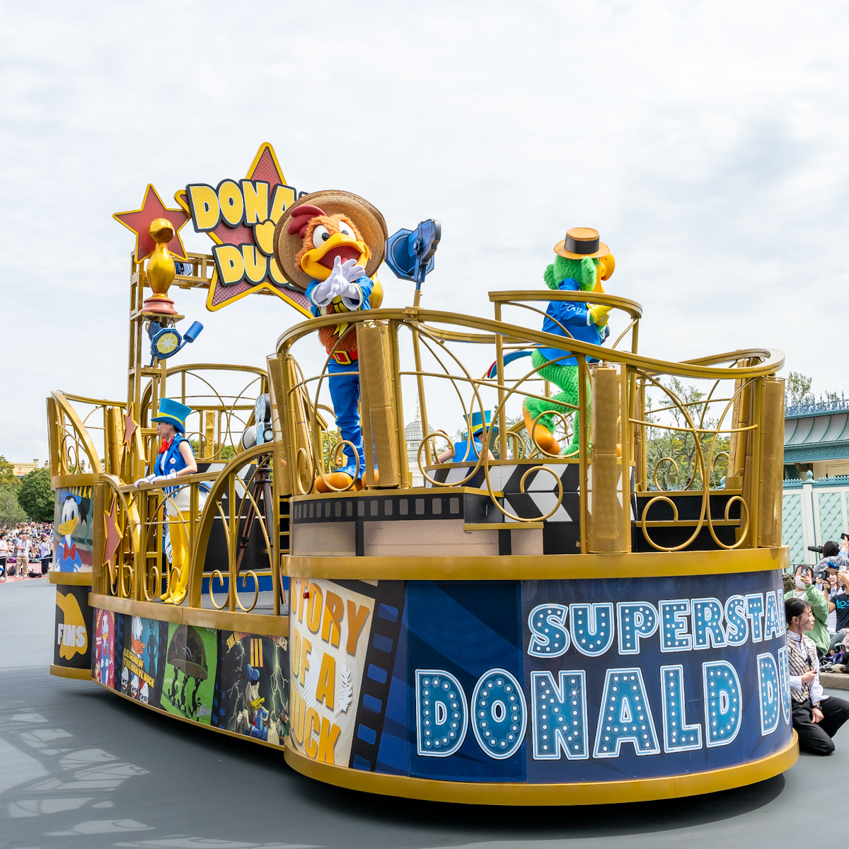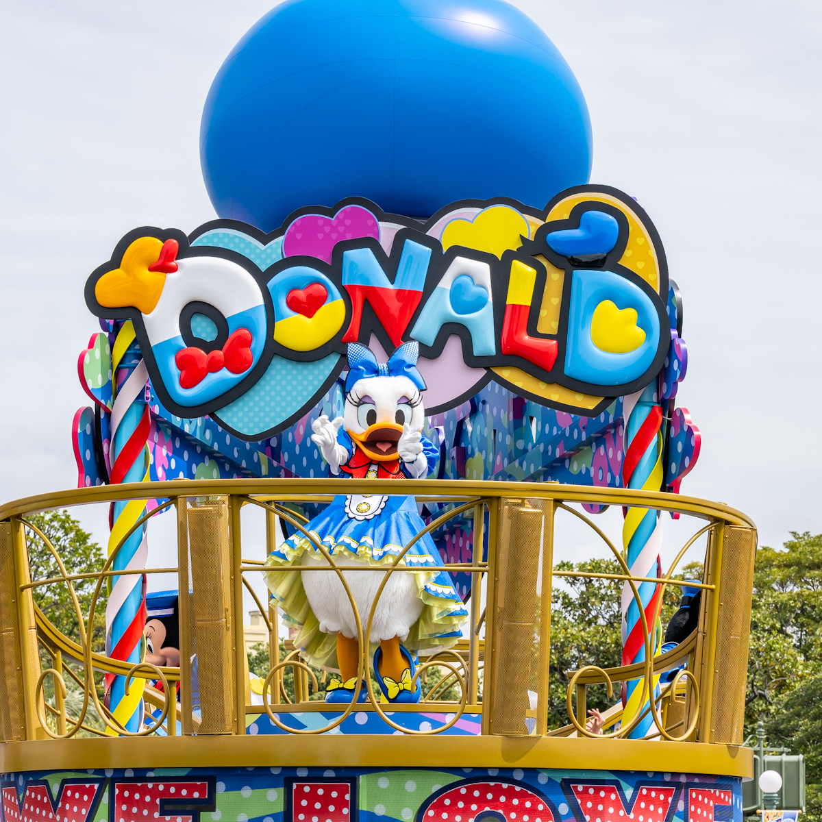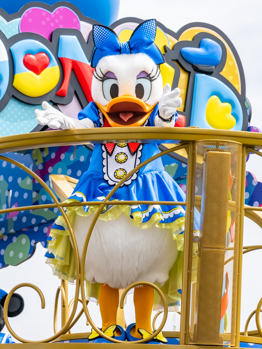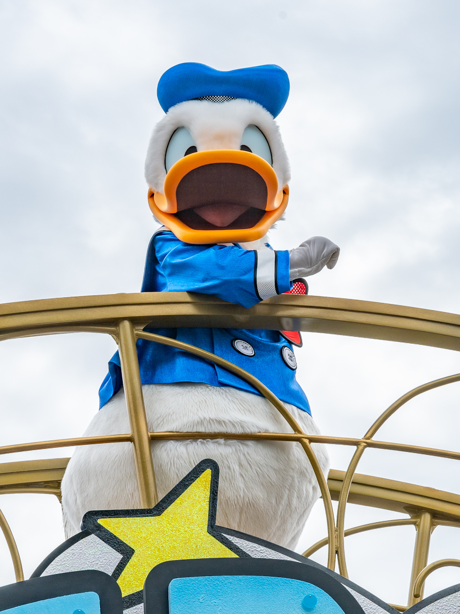 ドナルドダックへの想いが詰まったフロートに乗っています。