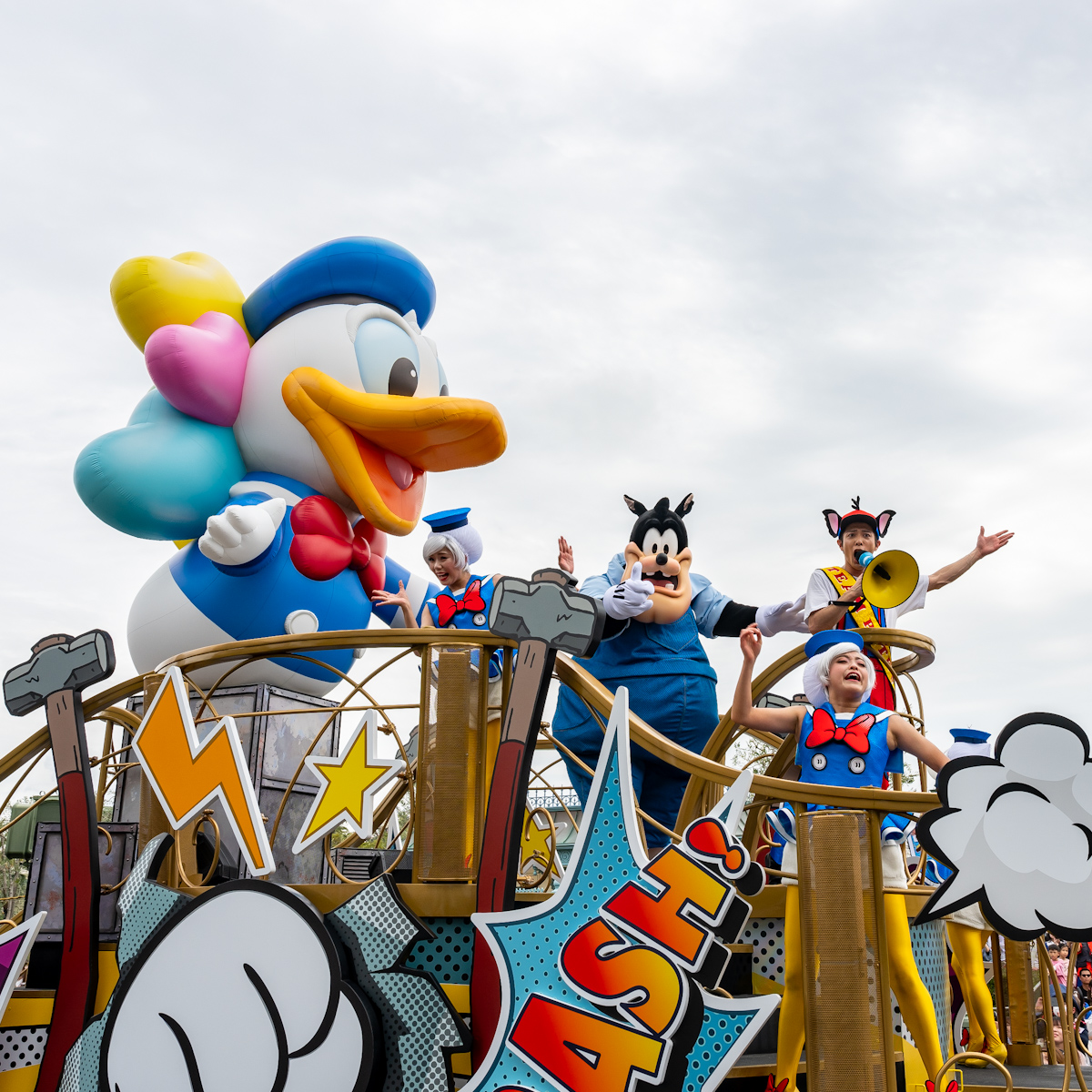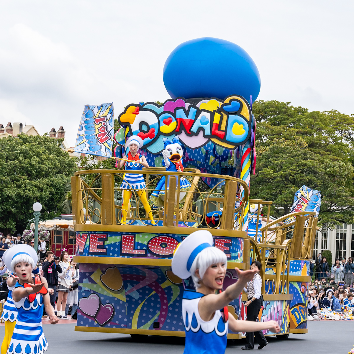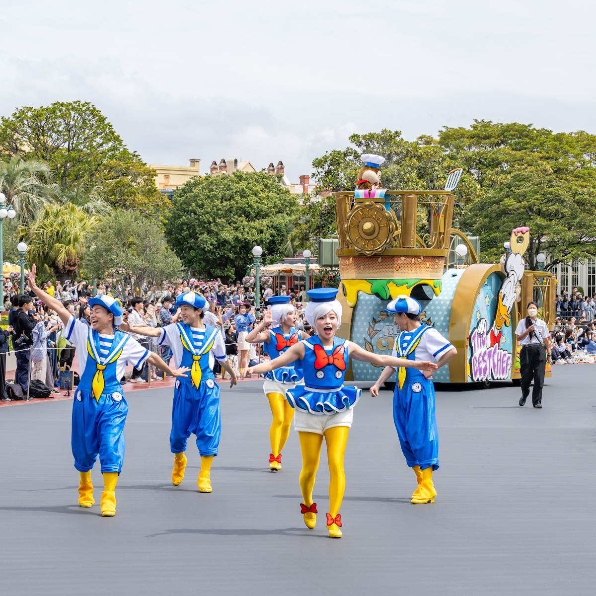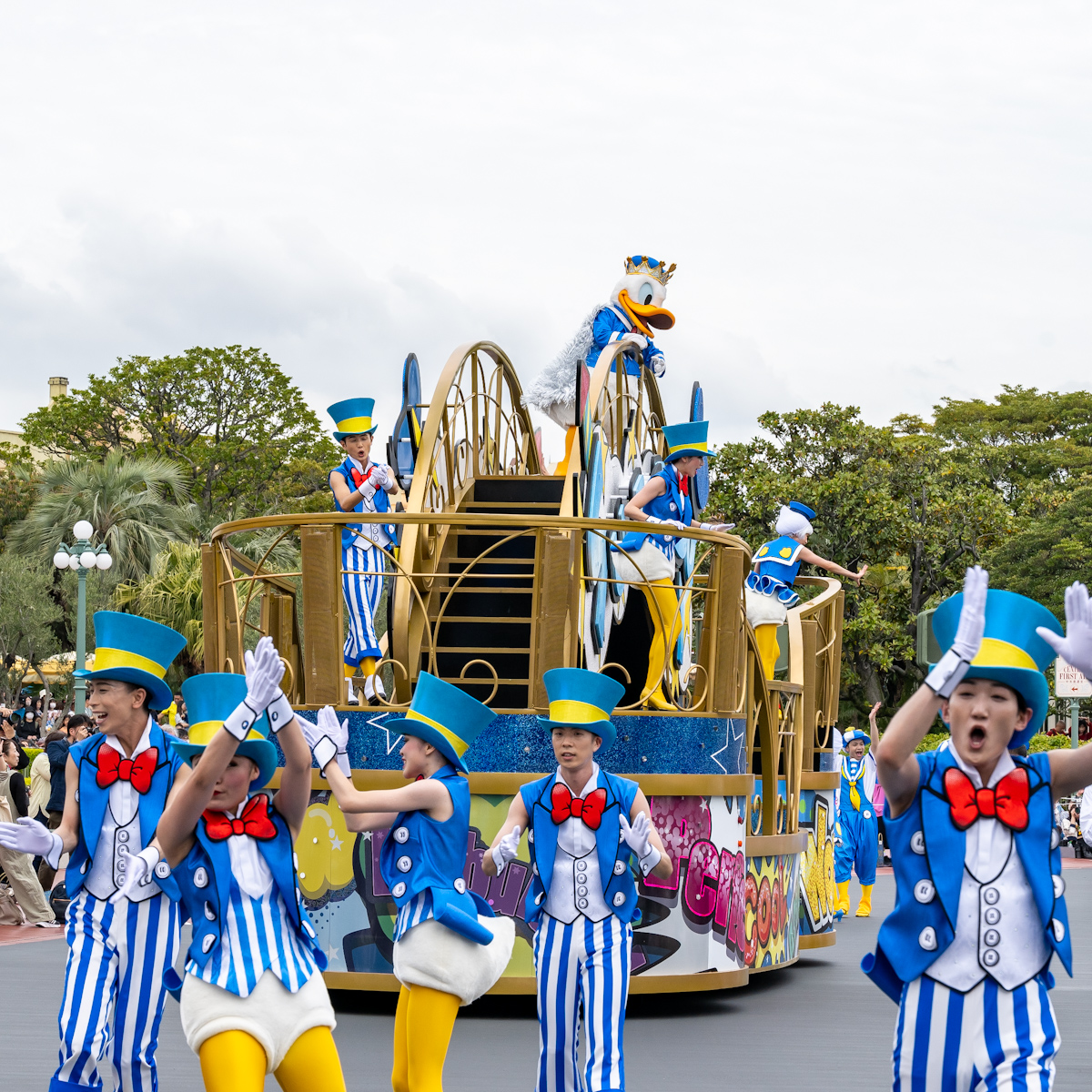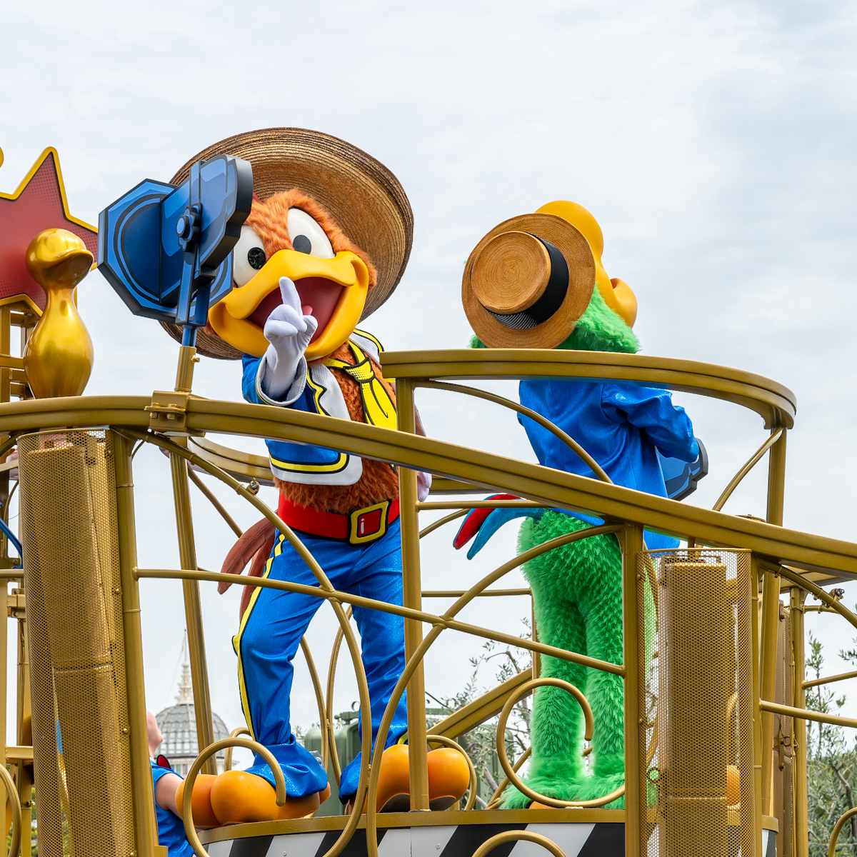 ドナルドダックへの想いが詰まったフロートに乗っています。