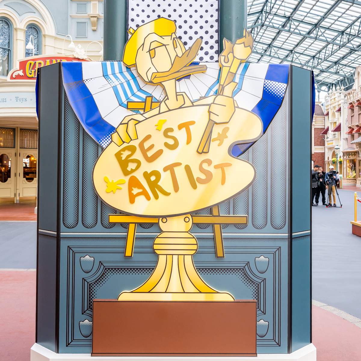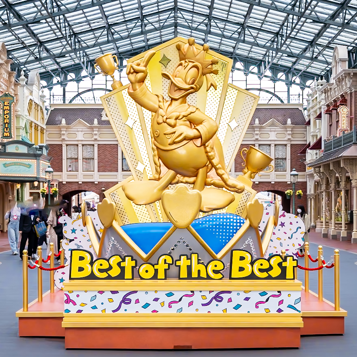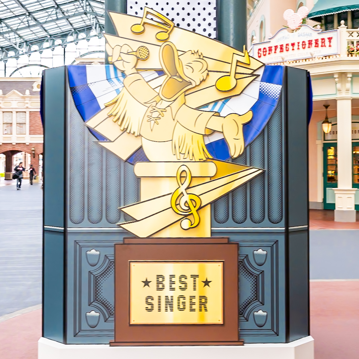 ワールドバザールの中央にはスーパースターとなったドナルドのモニュメントが登場。