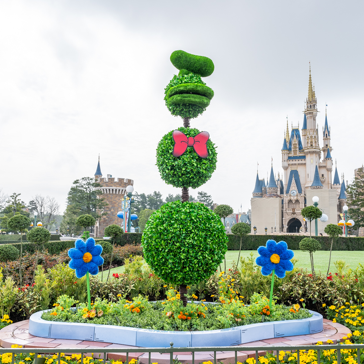 噴水のまわりには、ドナルドダックのお顔形のトピアリーも。