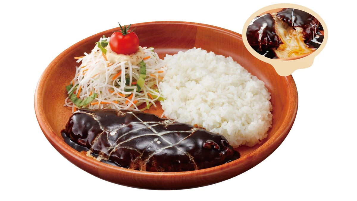 ハンバーグをお箸で割ると中からとろとろのチーズが溢れ出し、チーズとお肉とデミグラスソースが絶妙に混ざり合った、極上の味を楽しむことができます。