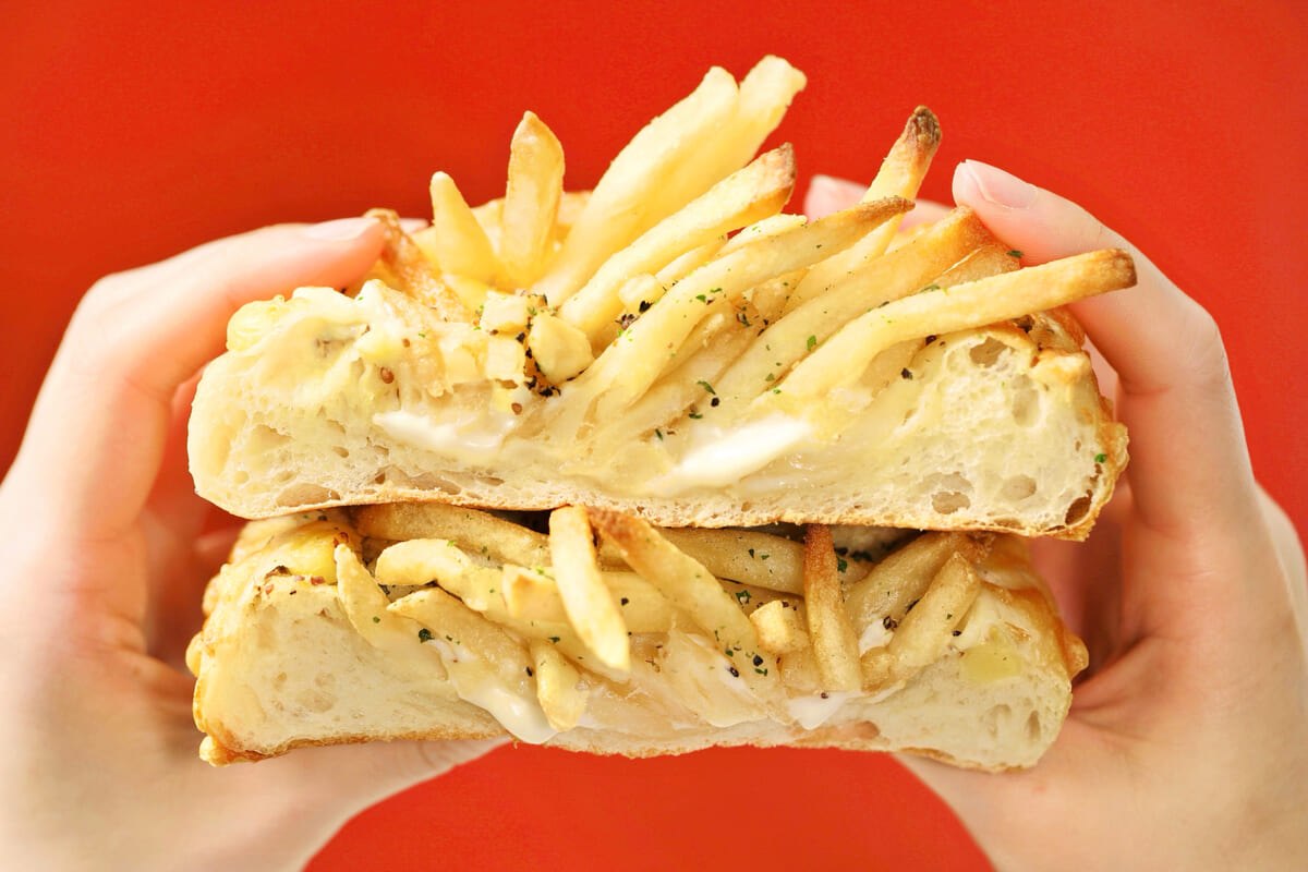 ”山盛り”のフライドポテトを盛った、フライドポテト好きにはたまらない5月限定の「山盛りポテトチーズフランス」は、累計440万個突破の惣菜パン人気No.1の商品「のび~るとろりんチーズフランス」をアレンジしたもの。