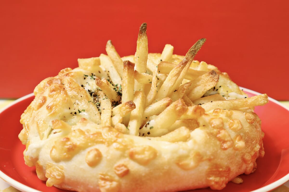 大胆にトッピングされた山盛りポテトと、とろけるチーズが食欲をそそるパン。