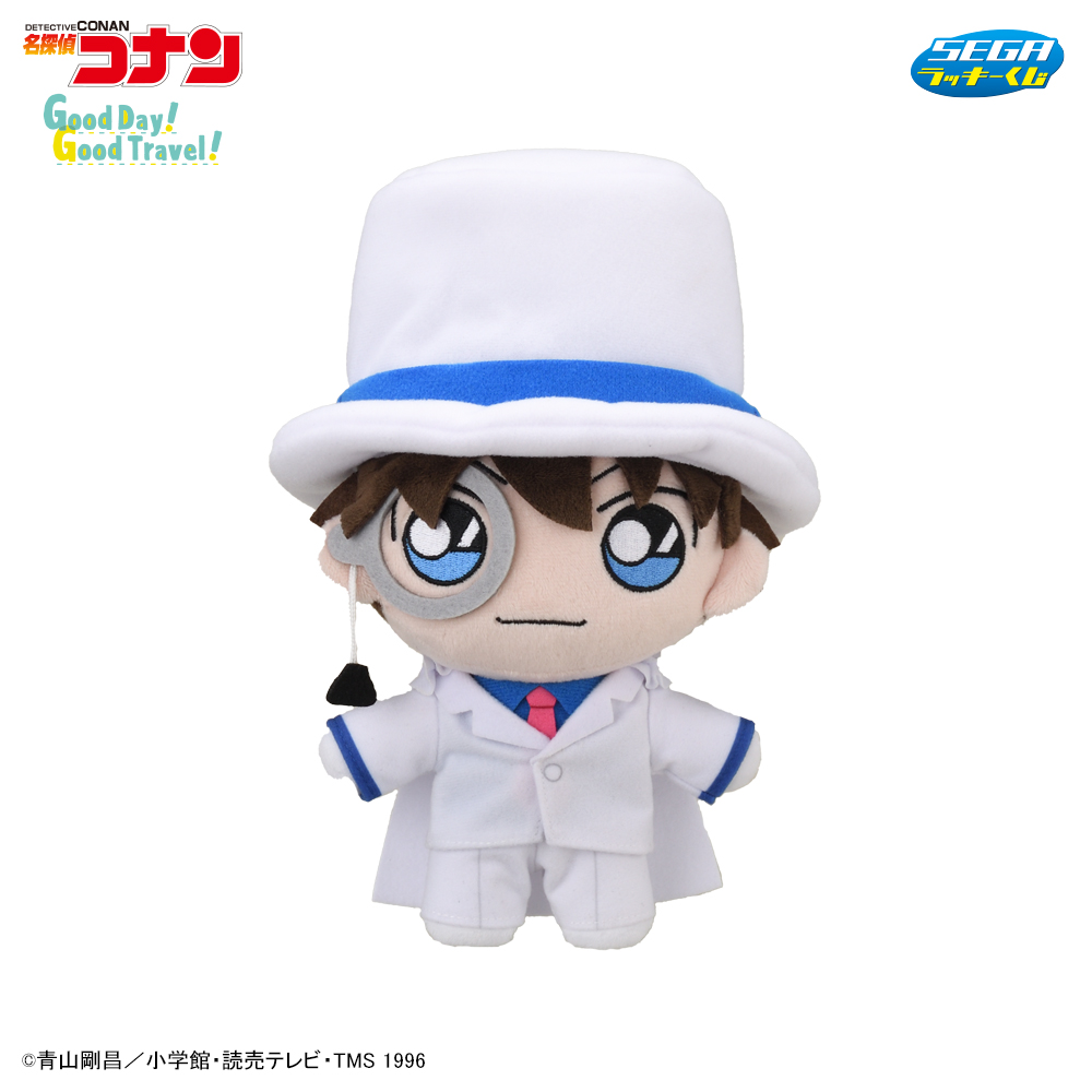 ホワイトのスーツにブルーのシャツが映える、スタイリッシュな「怪盗キッド」がかわいいぬいぐるみになっています。