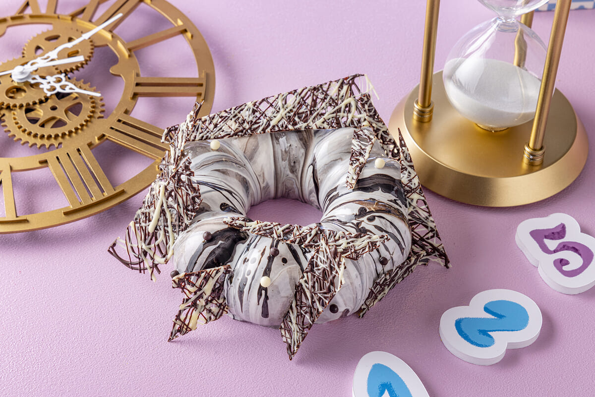 ホワイトチョコレートのババロアとラムレーズン入りチョコレートノワールのムースの組み合わせがリッチな「時空を旅するショコラ」、
