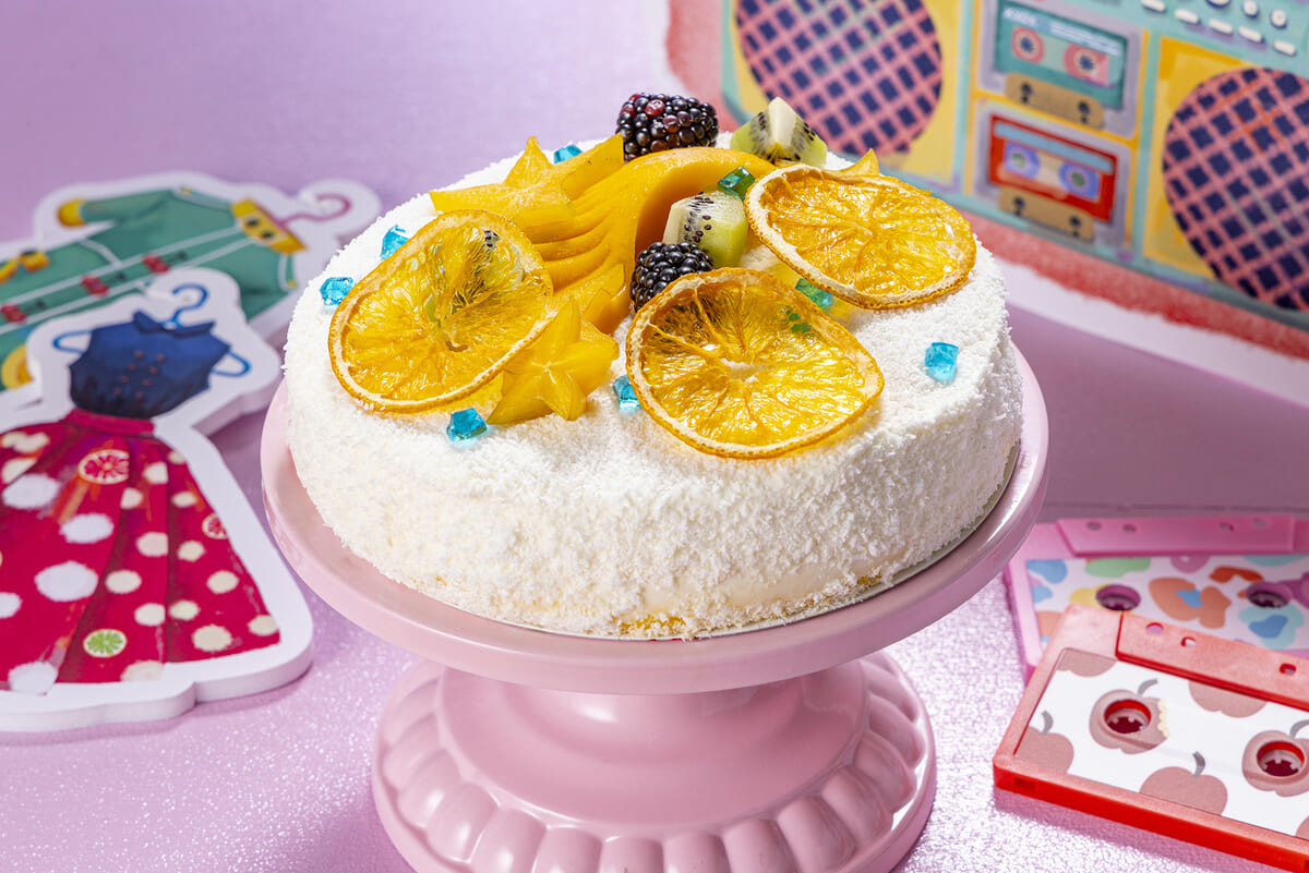 チーズスフレにココナッツをコーティングし、オレンジ、マンゴー、キウイ、ドラゴンフルーツなどをトッピングした「君たちキウイ、オレンジ、マンゴーだね」、