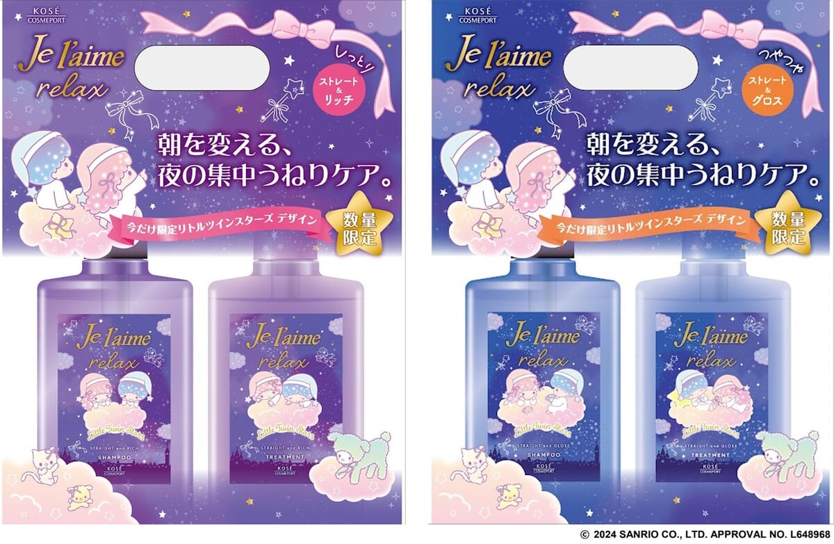 コーセーコスメポートが手掛ける総合ヘアケアブランド「ジュレーム」の「リラックス」シリーズから、サンリオの人気キャラクター「リトルツインスターズ」デザインのシャンプー&ヘアトリートメントセットが登場!