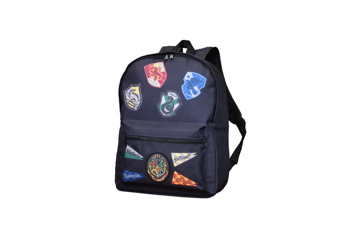 『ハリー・ポッター』のホグワーツ4寮すべての寮章と、各寮のフラッグ、そしてホグワーツ魔法魔術学校の校章が入った豪華なデザインのリュックです。