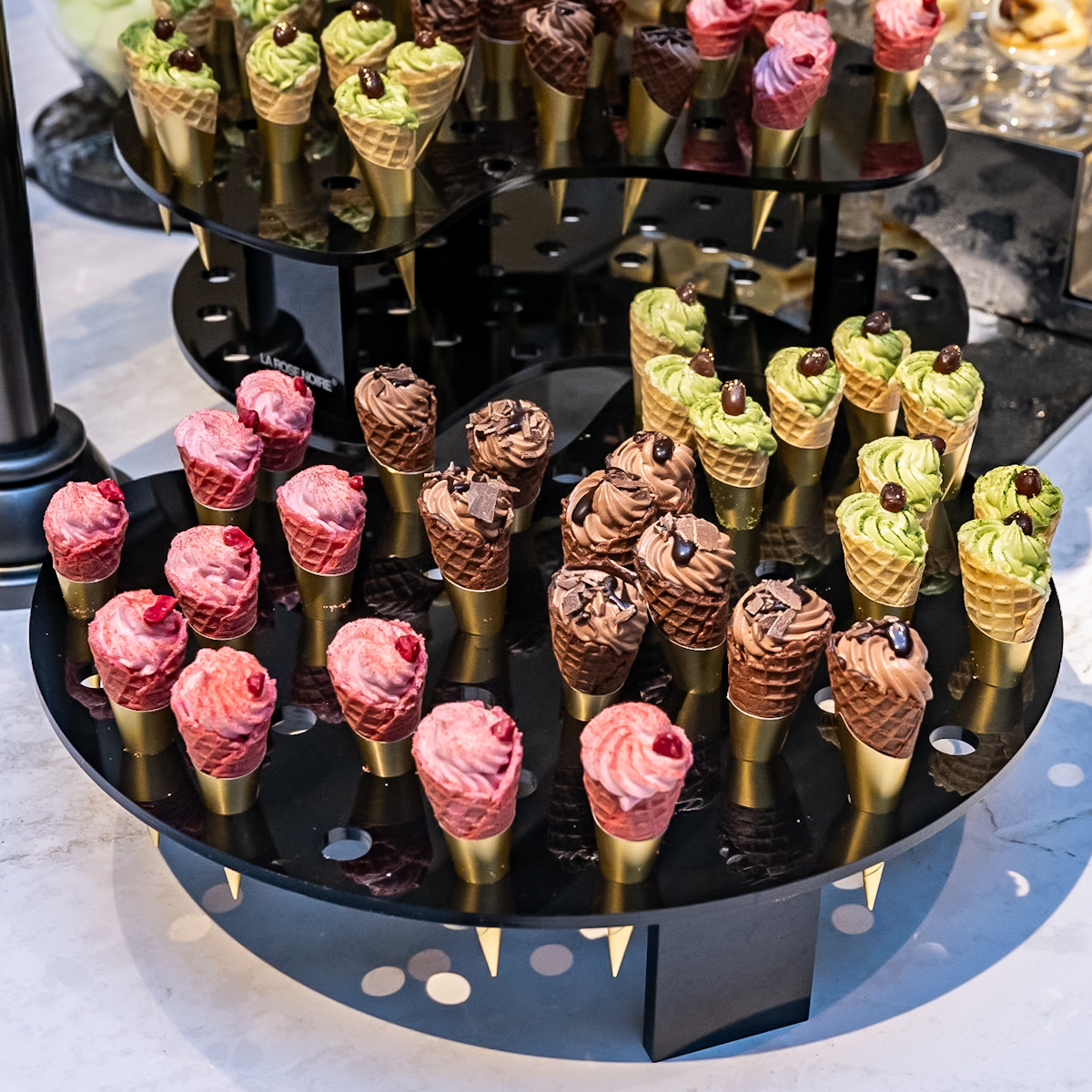 抹茶、ショコラ、ストロベリーの味わいが楽しめるミニコーン。