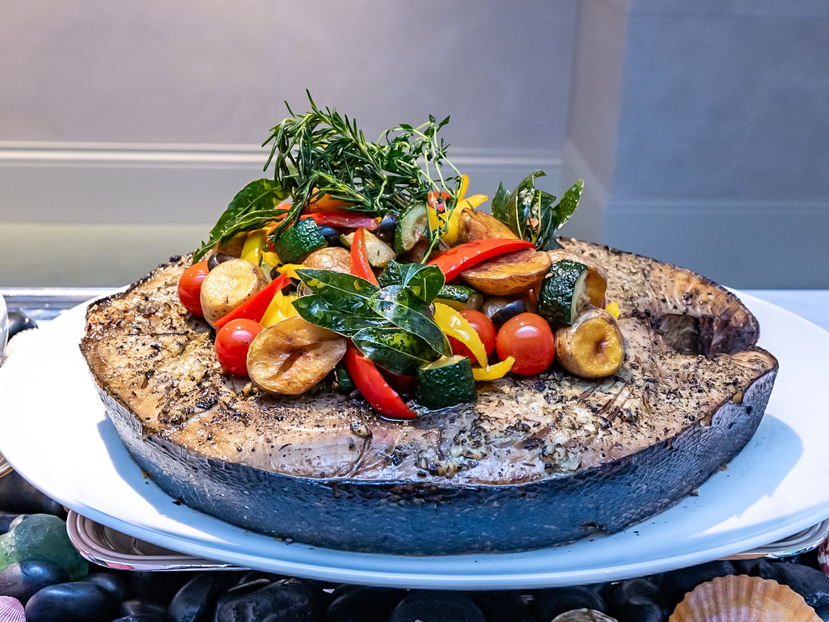 胴切りにしたバチマグロをニンニクやハーブで一晩マリネ。