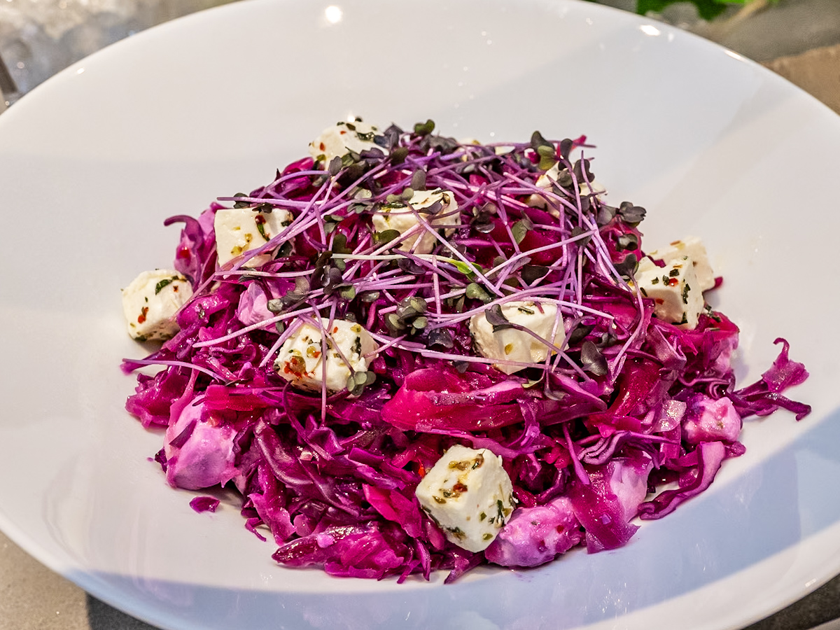 ギリシャ風のサラダをイメージした「赤キャベツとフェタチーズのサラダ」
