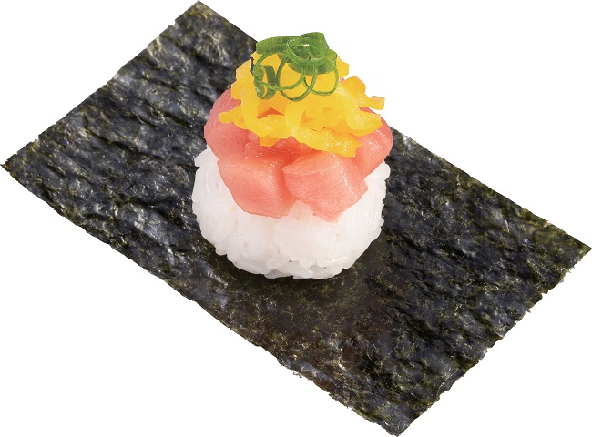 本鮪とろぶつの甘み、たくあんの食感などが楽しめる「本鮪とろたく包み」