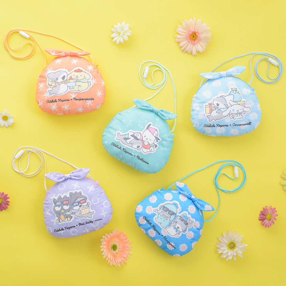 おでかけポシェットVol.2は、「シナモロール」「ポムポムプリン」「ハンギョドン」「ポチャッコ」「バッドばつ丸」の5種がラインナップ。