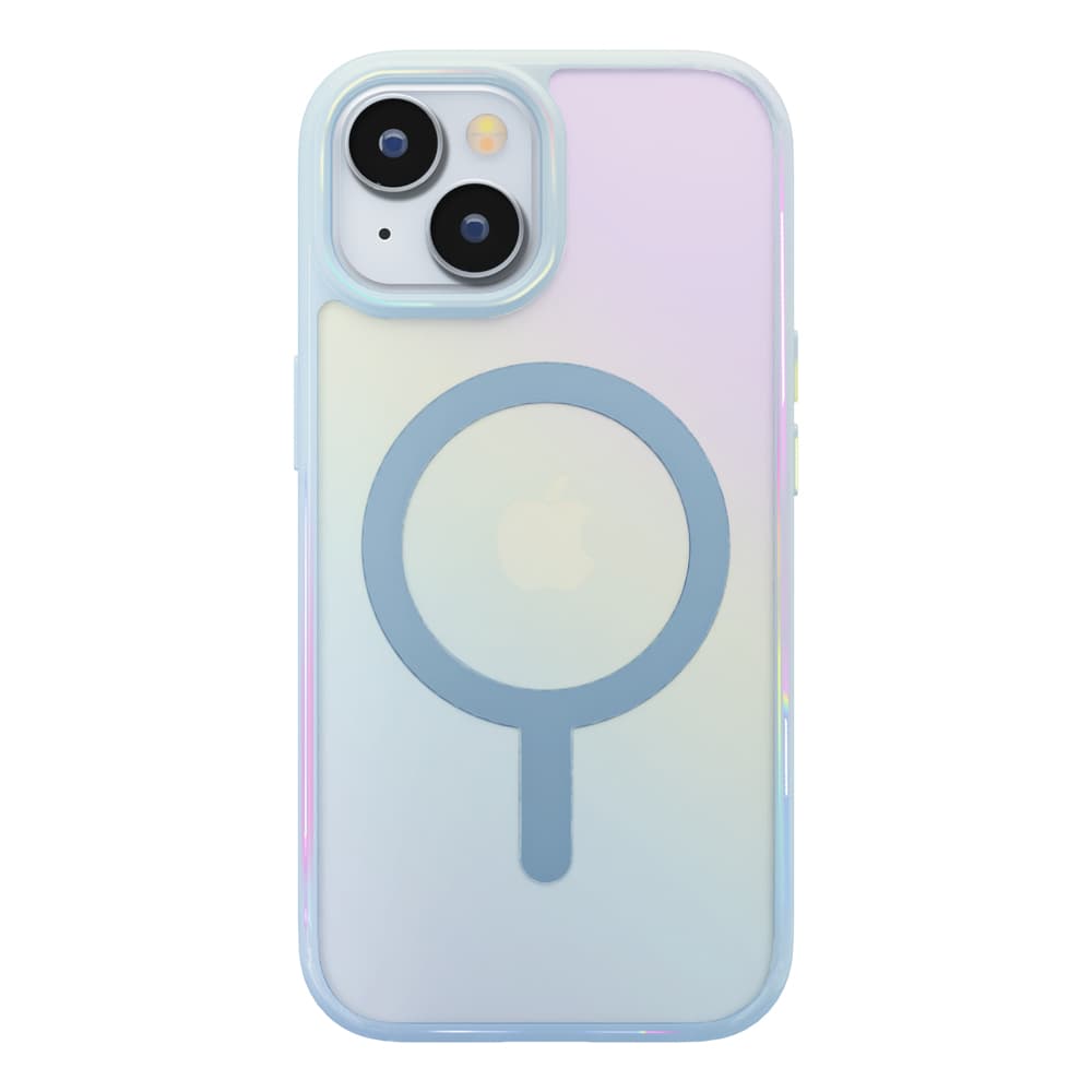 裏面と側面にオーロラ加工が施されたiPhone 15/14/13用ハイブリッドケース。