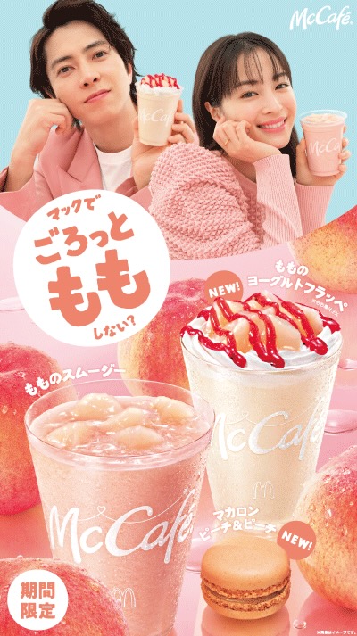 全国のマクドナルド店舗に、「もものスムージー」「もものヨーグルトフラッペ」「マカロンピーチ&ピーチ」が期間限定で登場!
