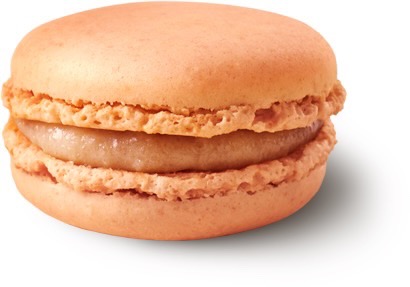 アーモンドが練りこまれたサクふわ生地に、黄桃と白桃の2種類の果汁を使用したフィリングをサンドしたマカロンです。