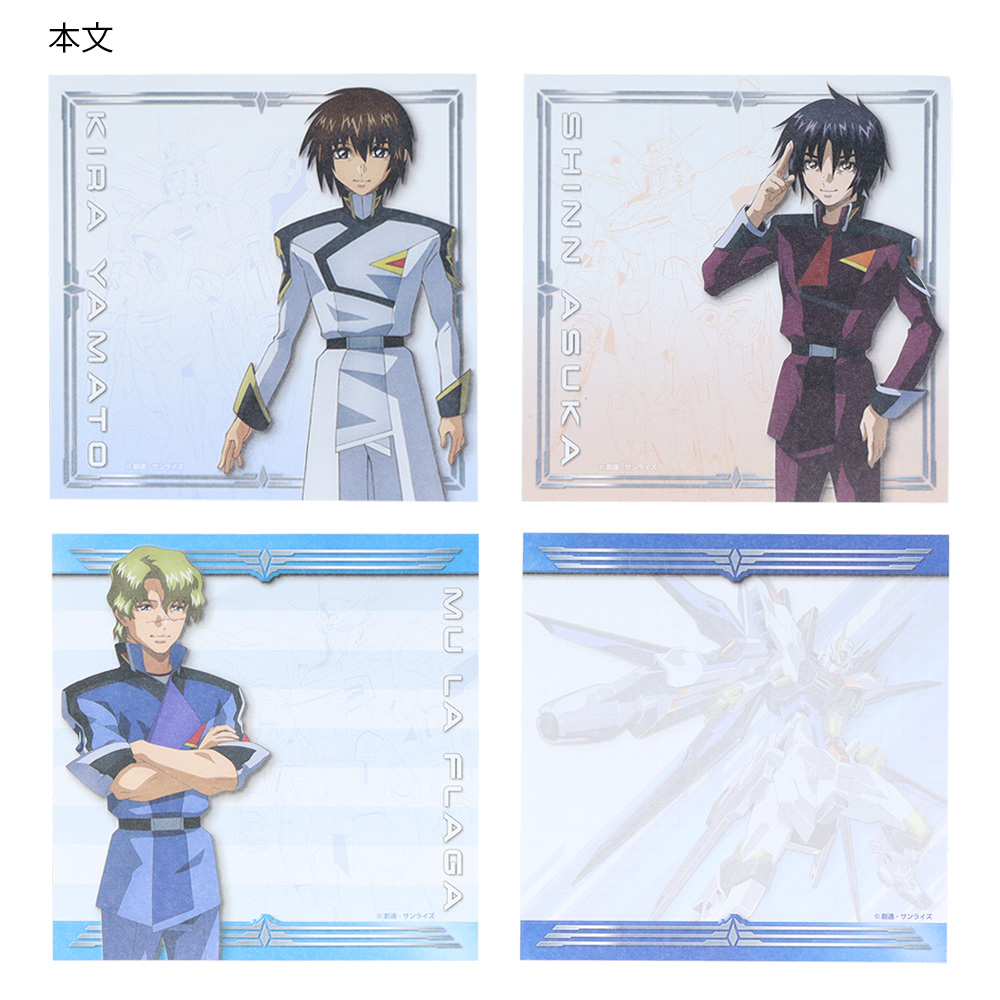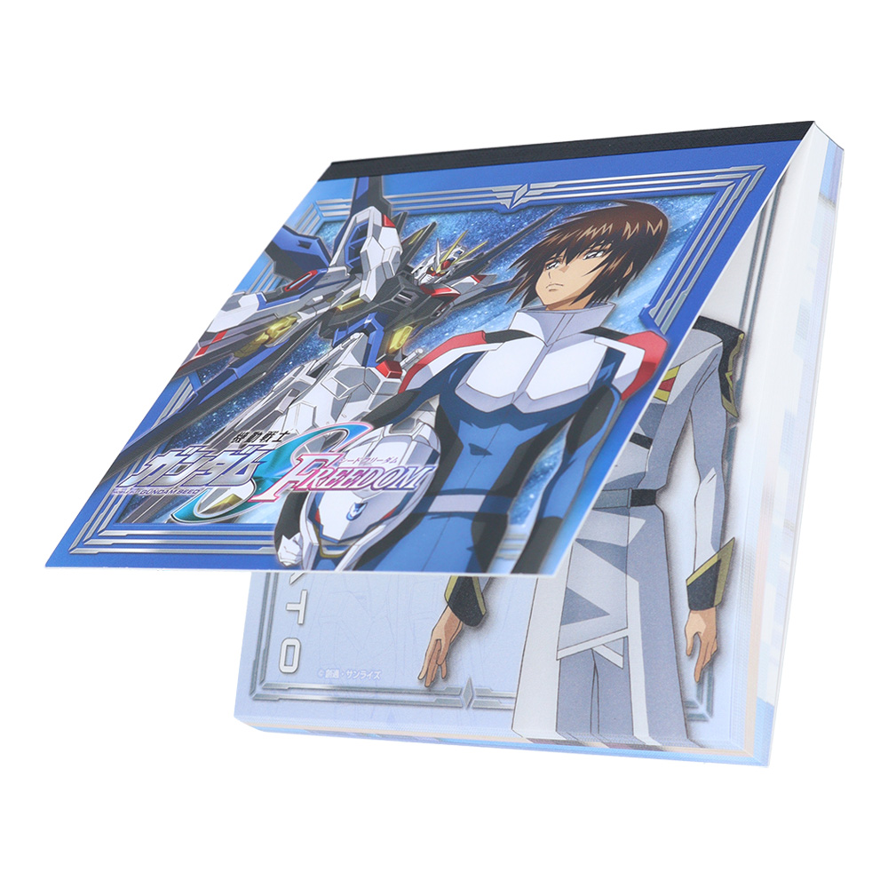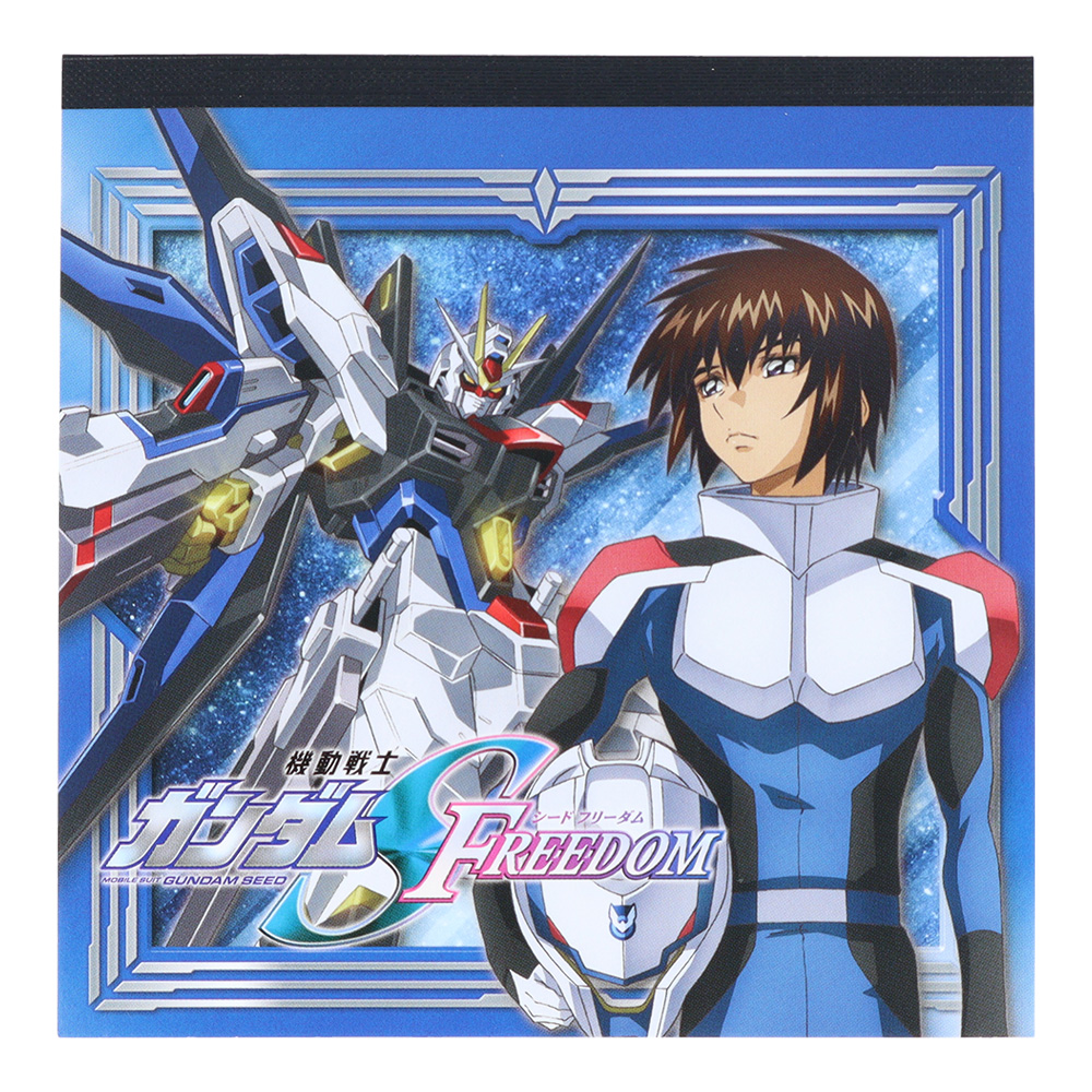 戦争を終わらせるための独立勢力となり、コンパスの一員として奔走する「キラ・ヤマト」と「ストライクフリーダムガンダム弐式」を表紙にしたスクエアメモ。